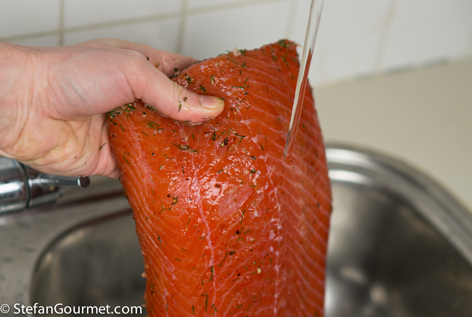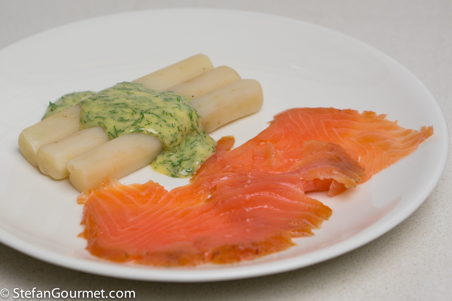 The whiskey cold smoked salmon turned out great. Next time I will use a bit more whiskey, because its effect was not as pronounced as in the piece of salmon that Conor kindly sent me over from Ireland as a Christmas greeting. It is a good idea to use coarse sea salt, which will make the salmon less salty than fine table salt. Thank you Conor, for the inspiration, salmon, and whiskey that made this all possible. The combination with the salsify and the dill sauce was delicious. Here is what I did…
