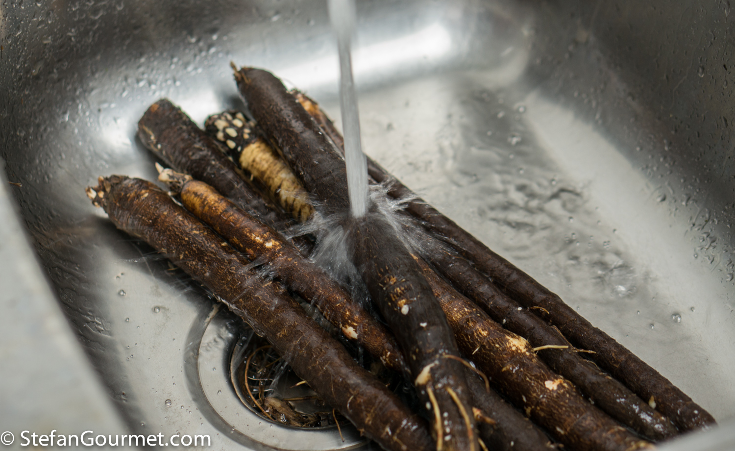 …as otherwise your hands will end up looking like this. The sap from the salsify does not come off easily!