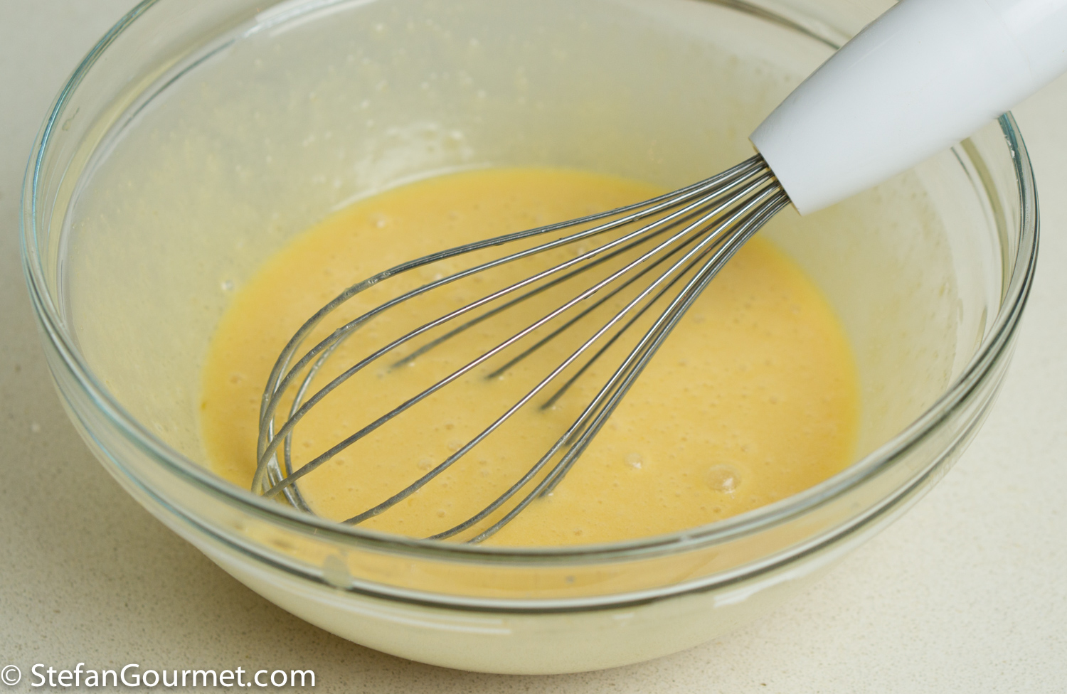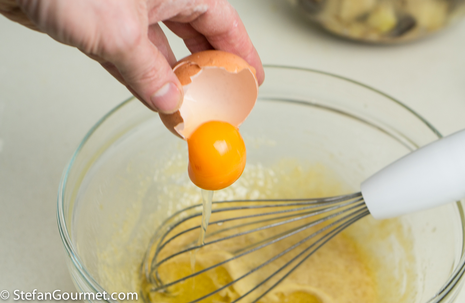 Whisk to incorporate. Add the 2nd and 3rd egg after the previous egg has been incorporated.
