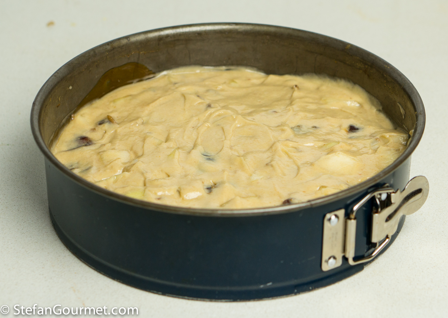 Stir to incorporate. Preheat the oven to 180C/350F. Put a 24 cm (10″) springform pan in the oven to preheat the pan as well.