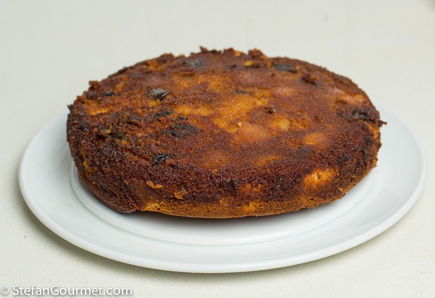 Turn the cake over on a serving dish, so that the side with the caramel is on top.