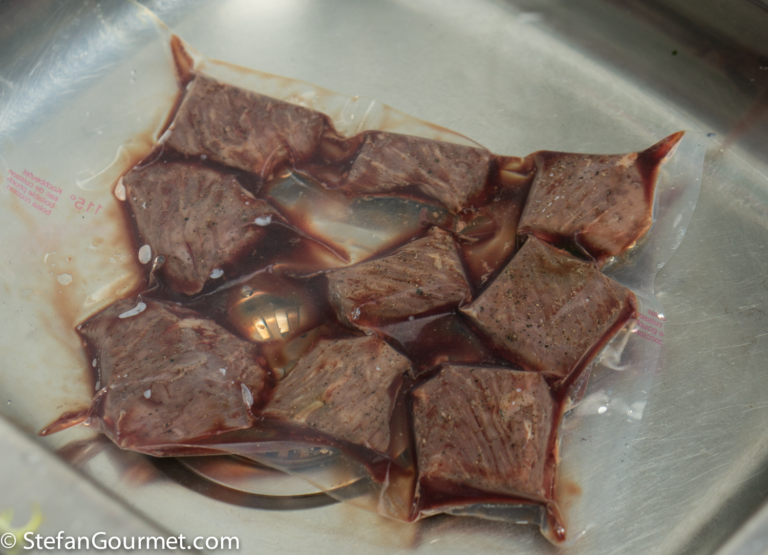 I chilled the bag with the meat quickly in cold water (add ice cubes if needed).