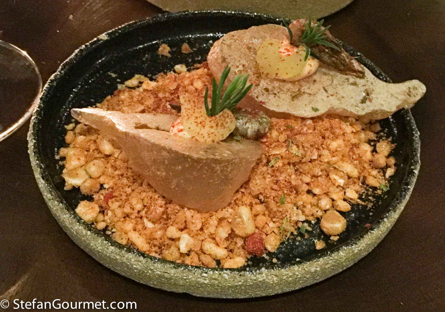 The first amuse bouche: a crispy shrimp served on a puffed up shrimp shell.