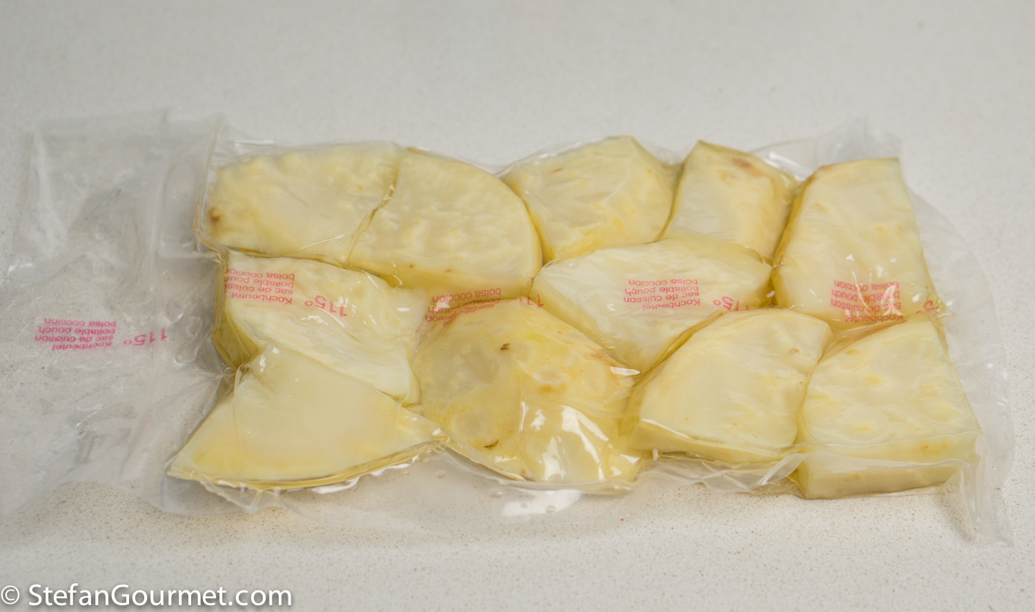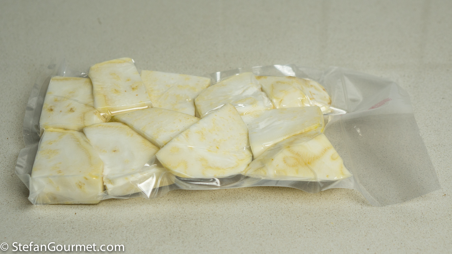 Cook 500 grams (1.1 lb) of celeriac until it is tender. I vacuum sealed it…