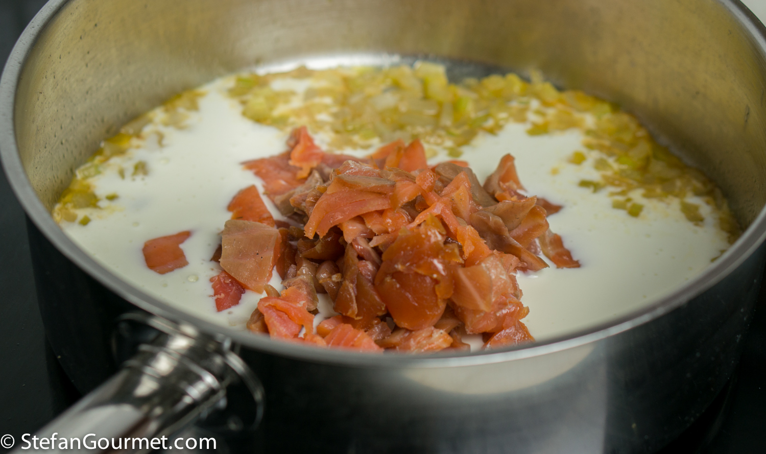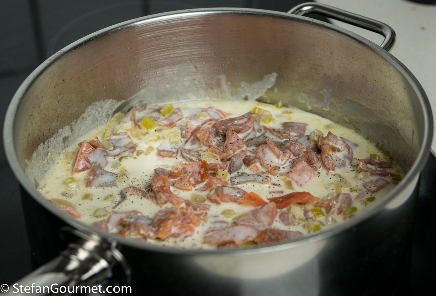 4. Gosh, Stefan! This sounds incredible! What a great combination of flavors. I love a salmon-flavored sauce for pasta dishes but you’ve taken it a step further by using it to dress celeriac gnocchi. Like Eha, I buy smoked salmon trimmings and use them for a salmon-cream sauce but now I have to try it with your gnocchi. 🙂