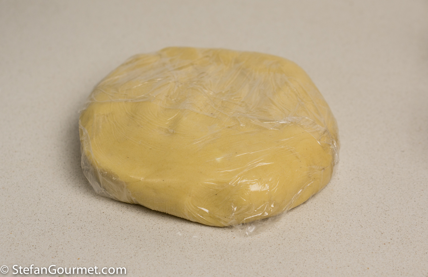 Gather the dough into a ball and wrap it in cling film. Refrigerate it for at least an hour to allow the gluten to relax (this makes it easier to roll out the dough).