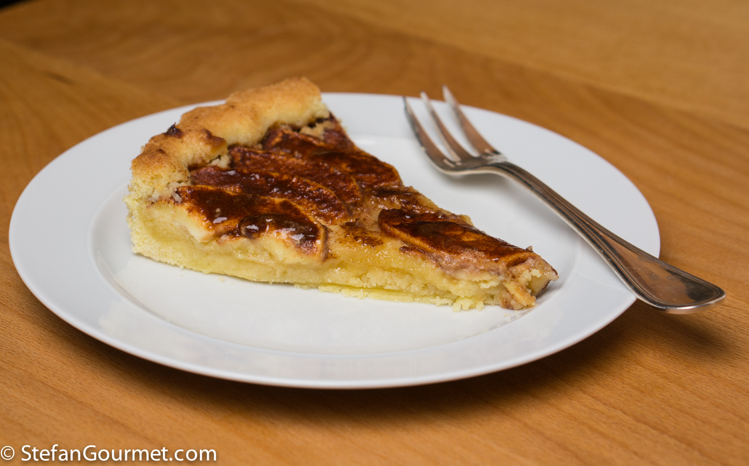 Now that’s a beautiful tart, Stefan. I must admit. If a dessert has almond flavoring, it is sure to delight me. I just love the stuff and pairing it with apples is, to me, heaven in a tart pan. 🙂