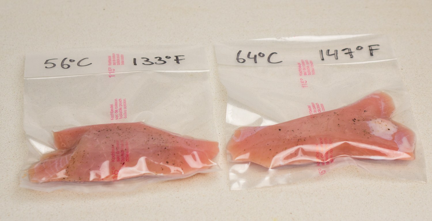 To find out the temperature for cooking turkey breast sous-vide that I like best, I performed a side-by-side experiment.