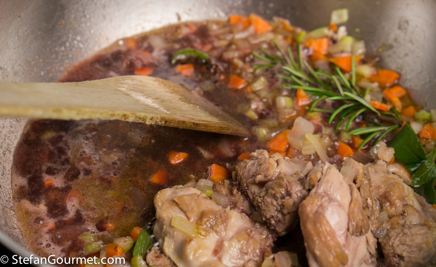 Scrape with a wooden spatula to get any browned bits into the sauce.