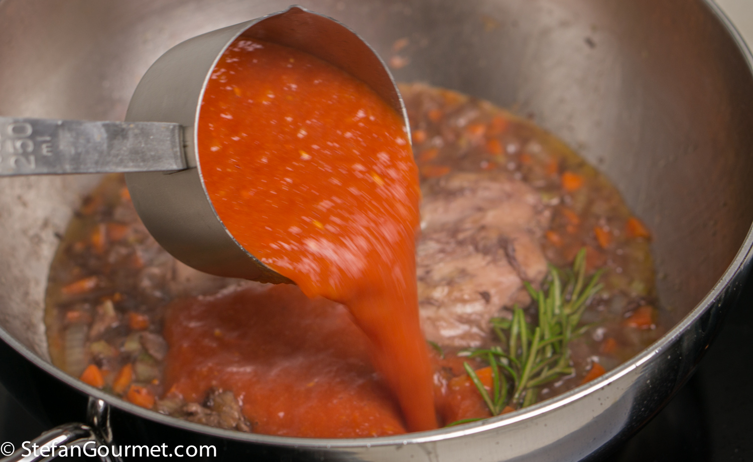 Add 250 ml (1 cup) of pureed tomatoes.