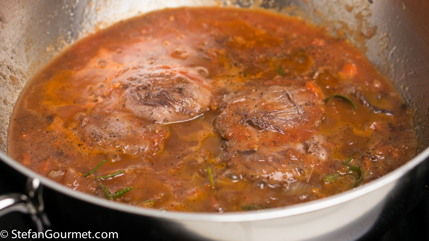 You could actually cook the thighs very quickly if they are taken off the bone, as in within minutes. They are like calamari though, either a few minutes or very long. Anything in between and they will be tough. Pollo alla cacciatora is actually even better when cooked over very low heat for a couple of hours.
