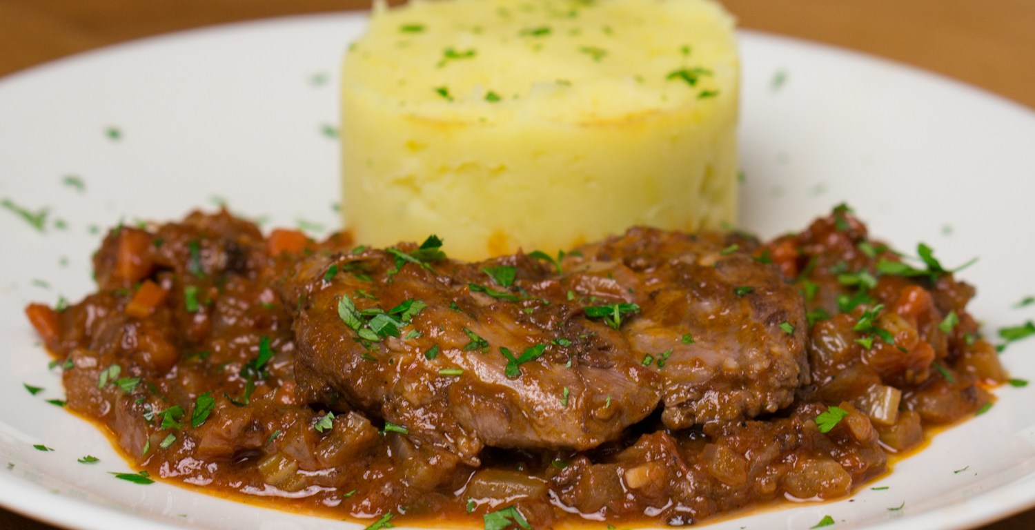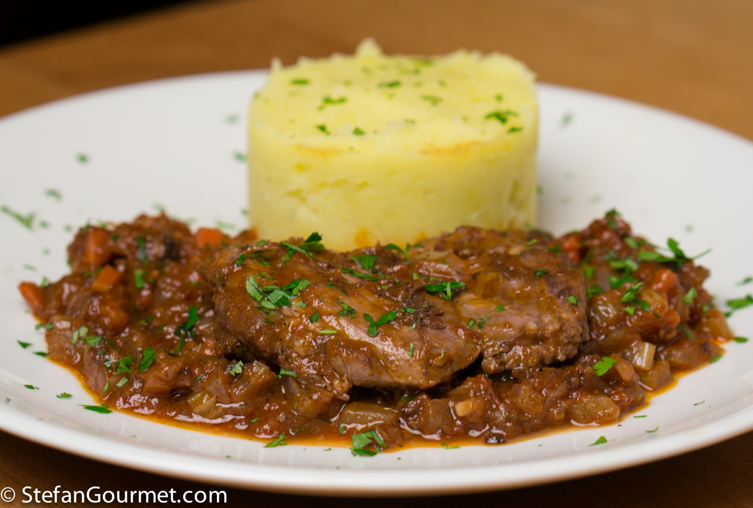 Serve on preheated plates with mashed potatoes.