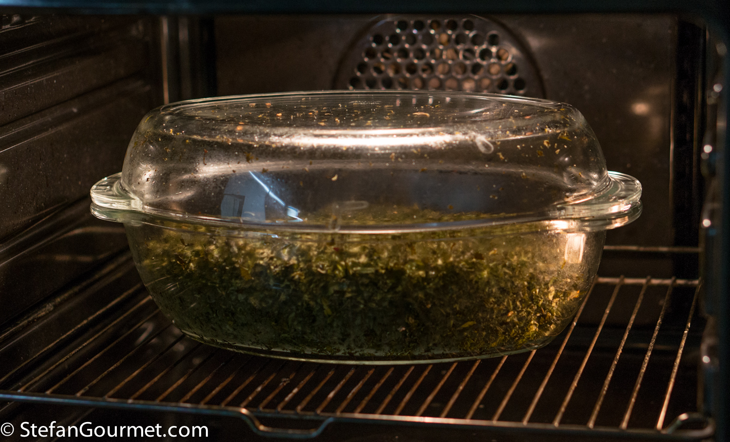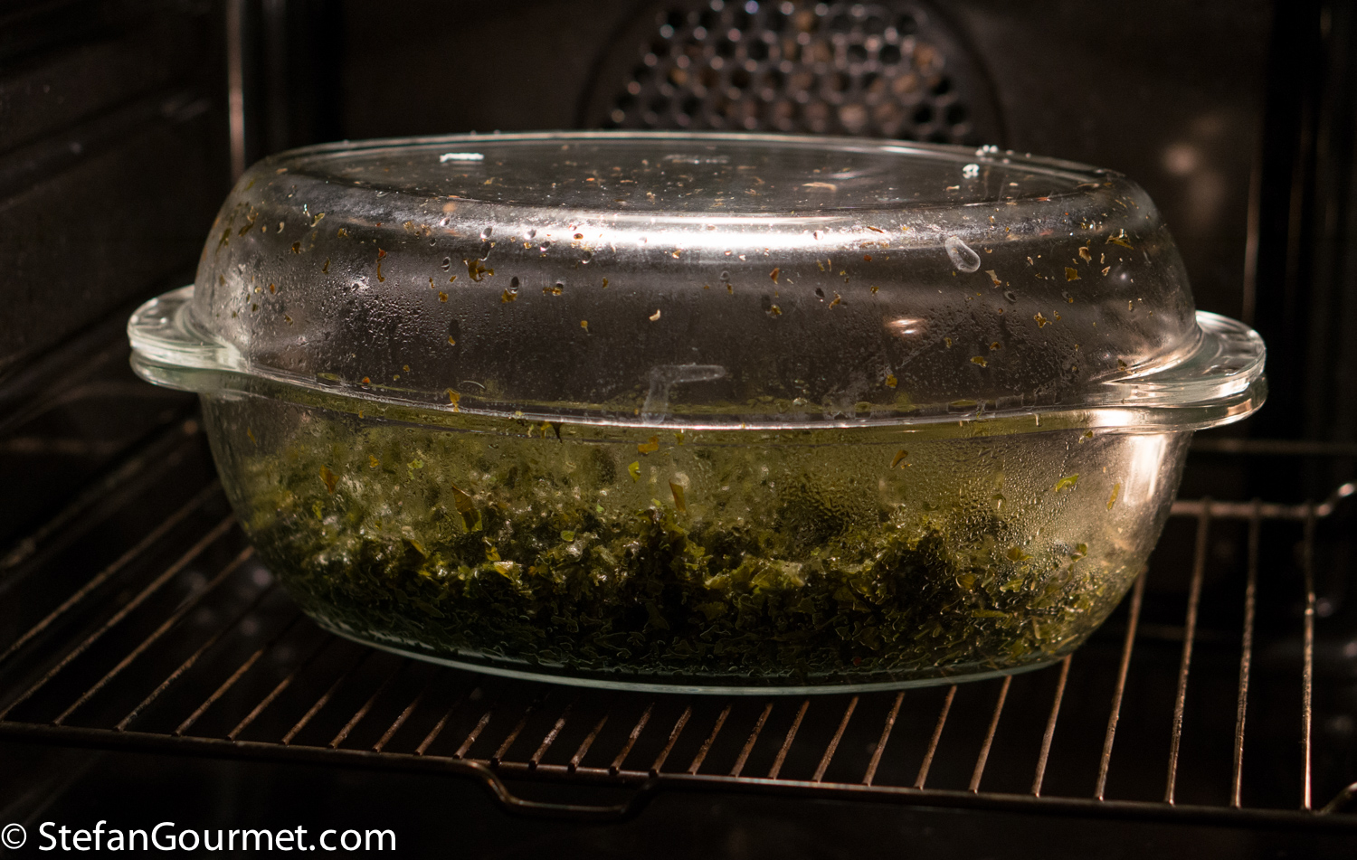 Bake the kale, covered, in the oven at 120C/250F for 2 hours.