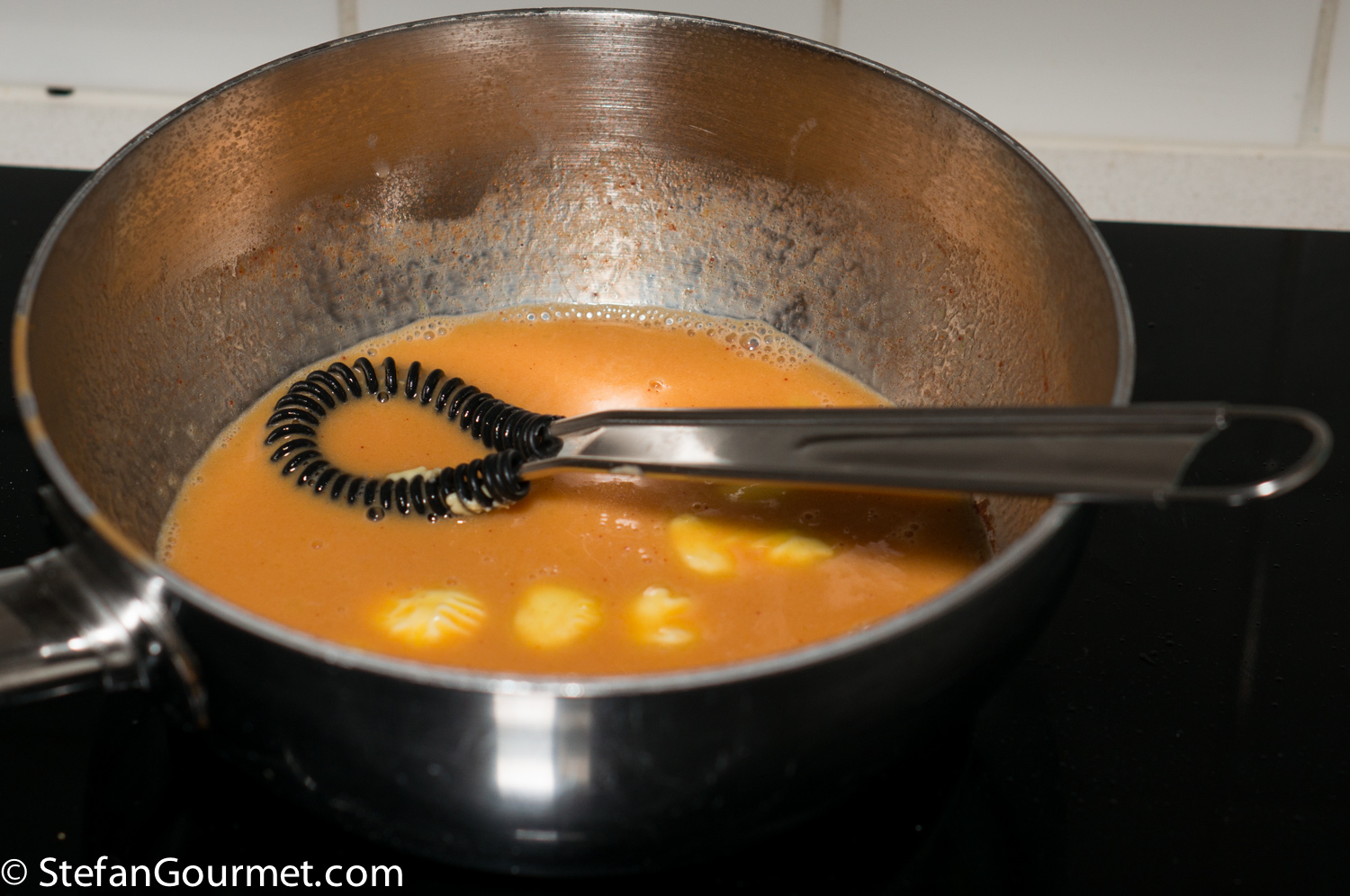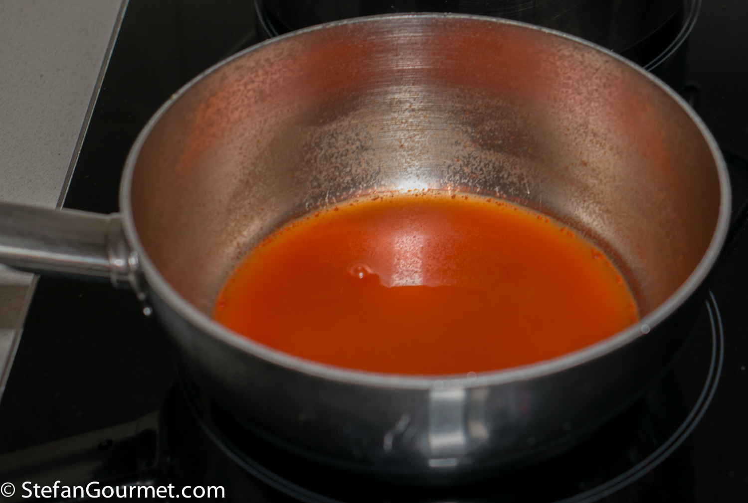 …until the sauce has thickened. Season with salt and cayenne pepper to taste. You may wish to add a bit of sugar and/or lime juice as well.