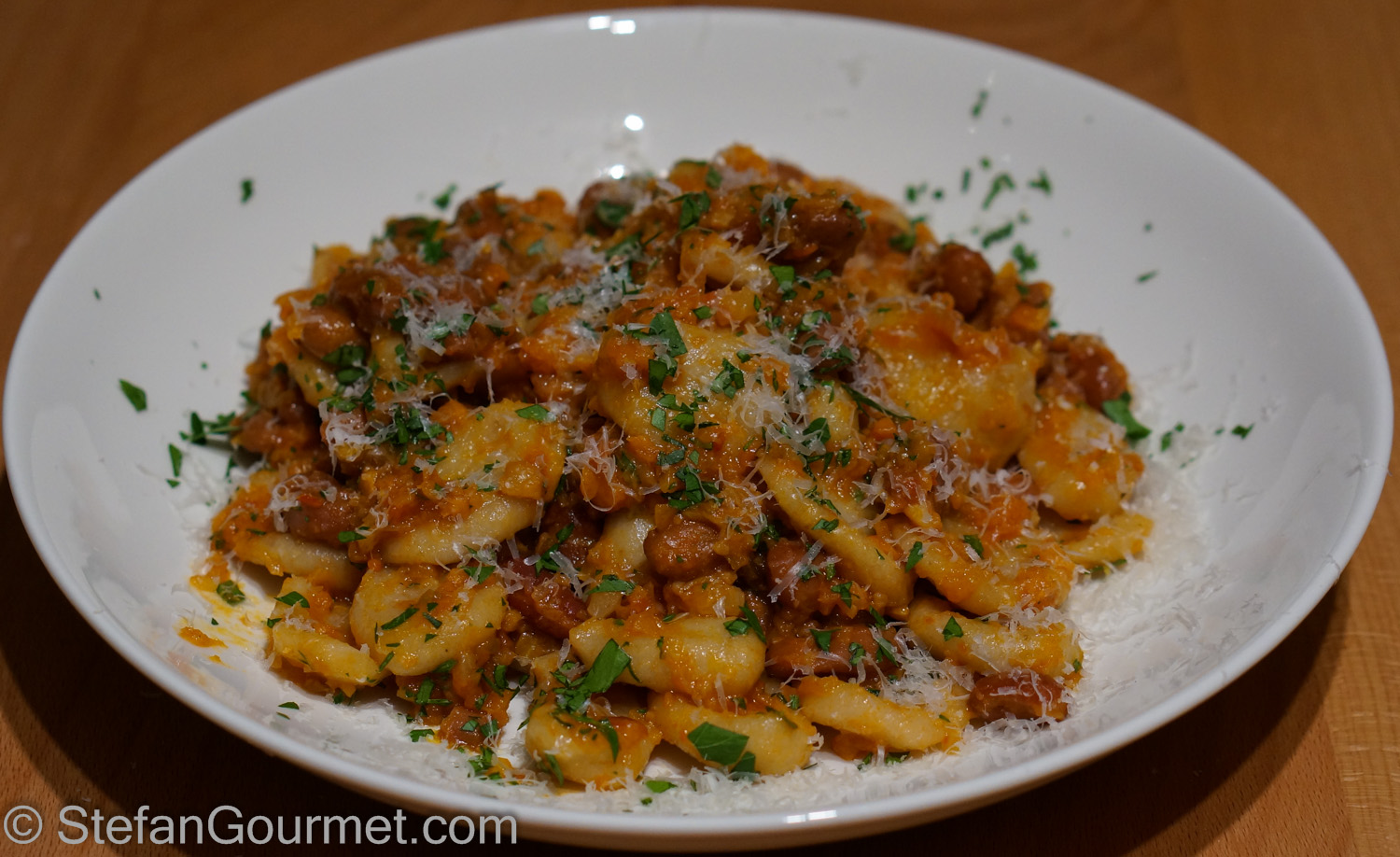 Pisarei e fasö is a typical dish from the province of Piacenza in Emilia-Romagna: breadcrumb gnocchi with beans.