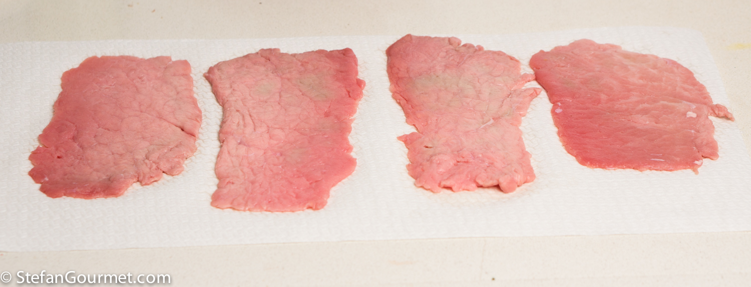 4 thin slices of veal, scaloppine, about 300 grams (.66 lb) total weight