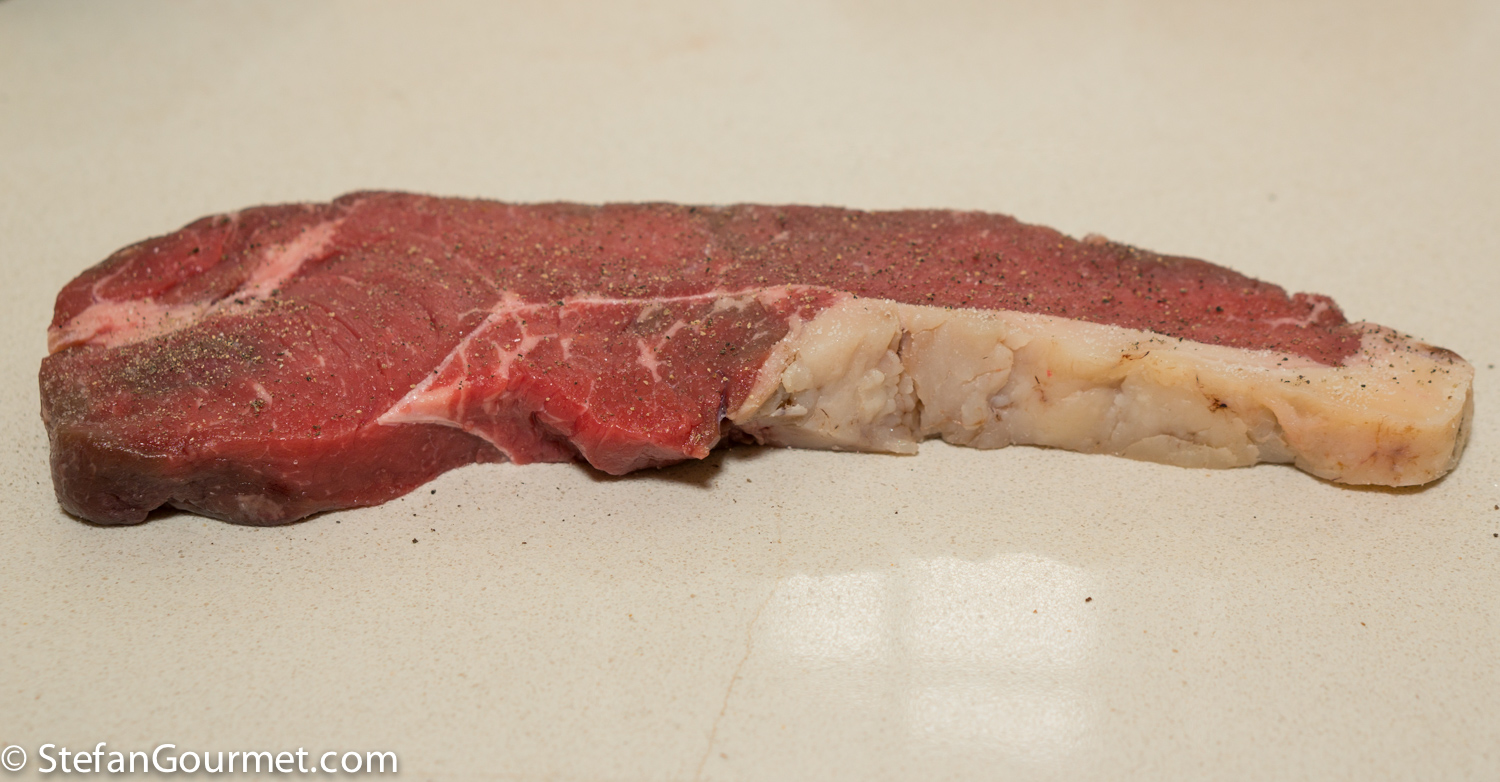 I seasoned the strip steak with salt and freshly ground black pepper on both sides.