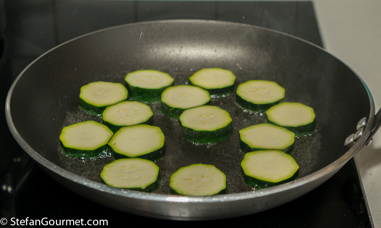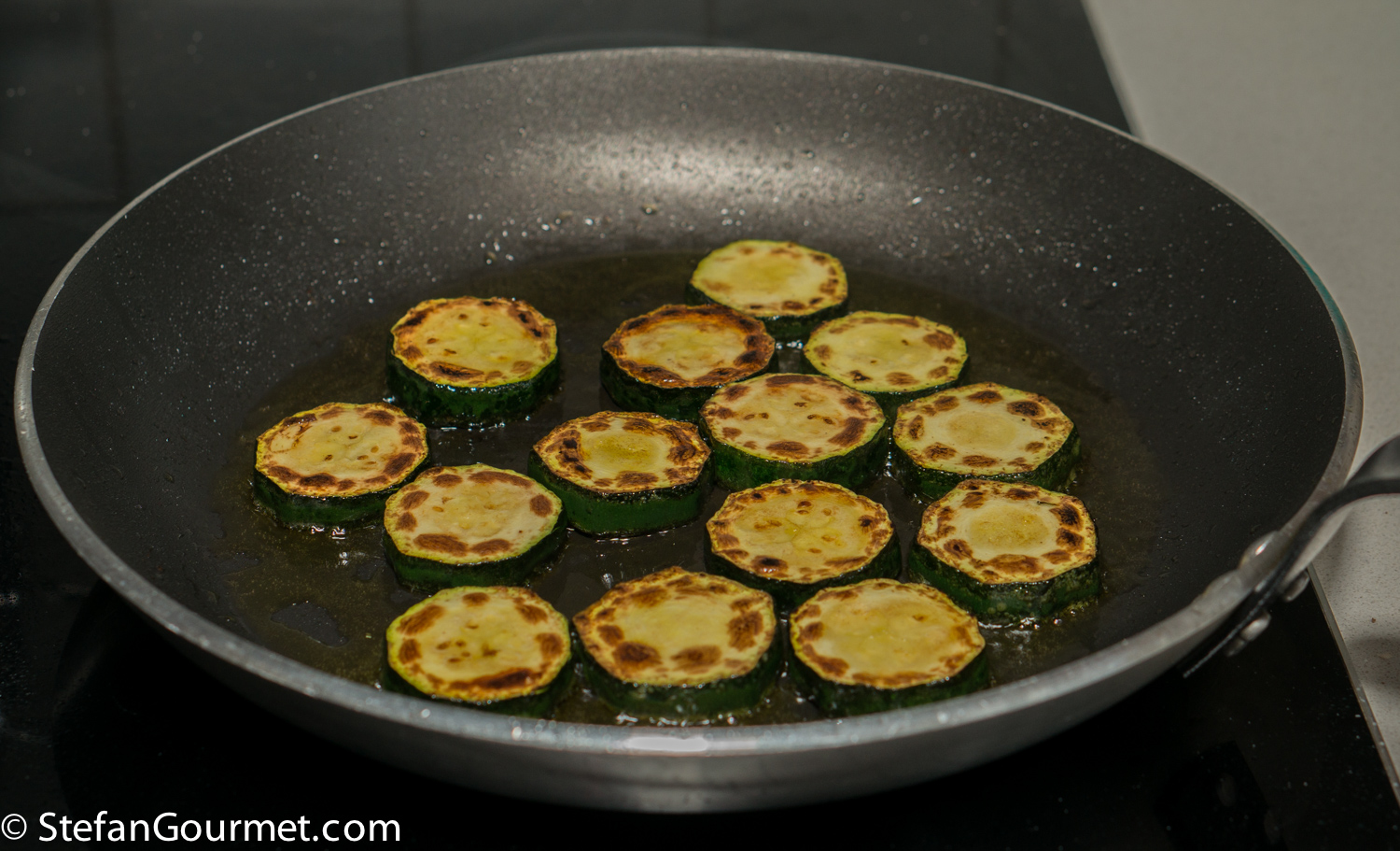 Meanwhile, I cut the zucchini into slices and fried them in a frying pan in olive oil…