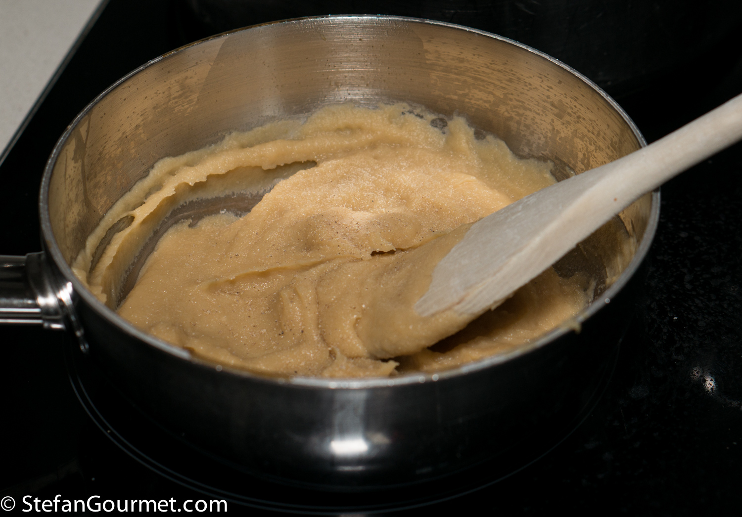 I put the parsnips puree into a saucepan, and seasoned it to taste with salt and freshly ground black pepper.