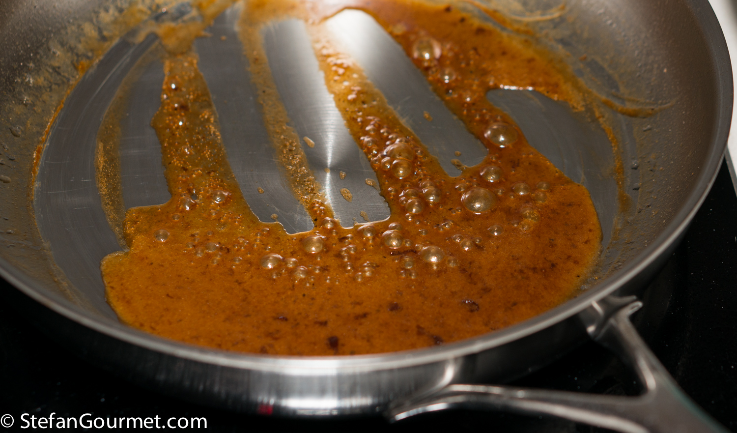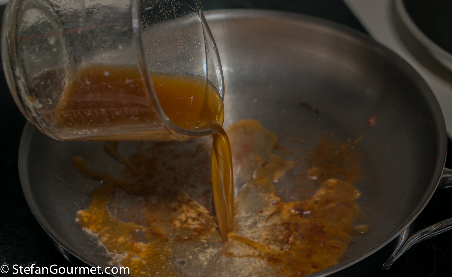 I took the strip steak out of the pan, and deglazed the pan with the star anise-perfumed beef stock (discard the star anise).