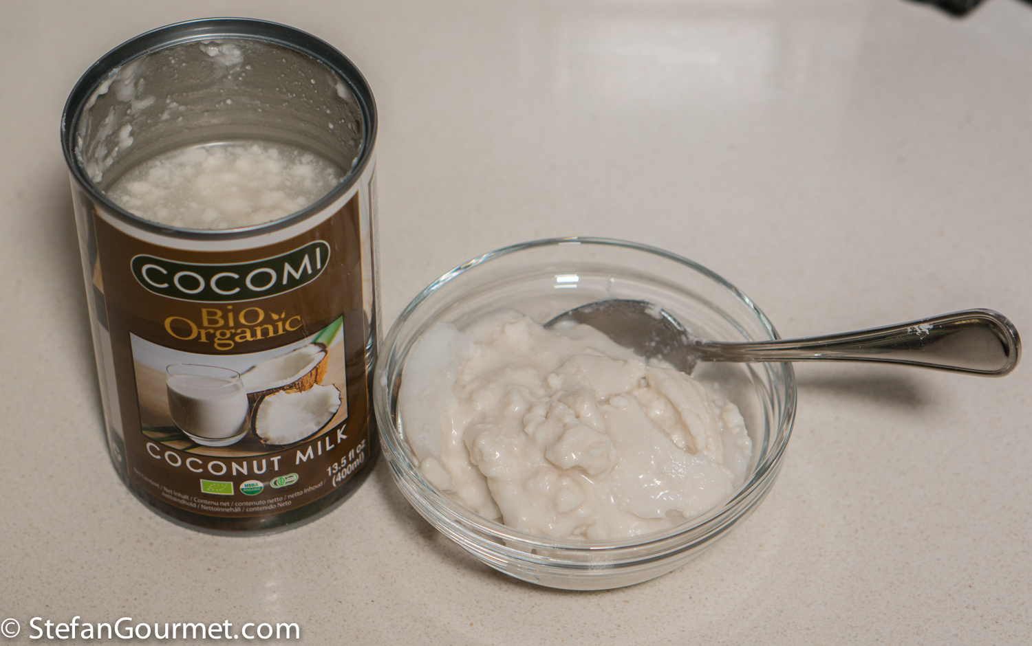 Transfer the cream of a can of coconut milk into a small bowl and reserve.