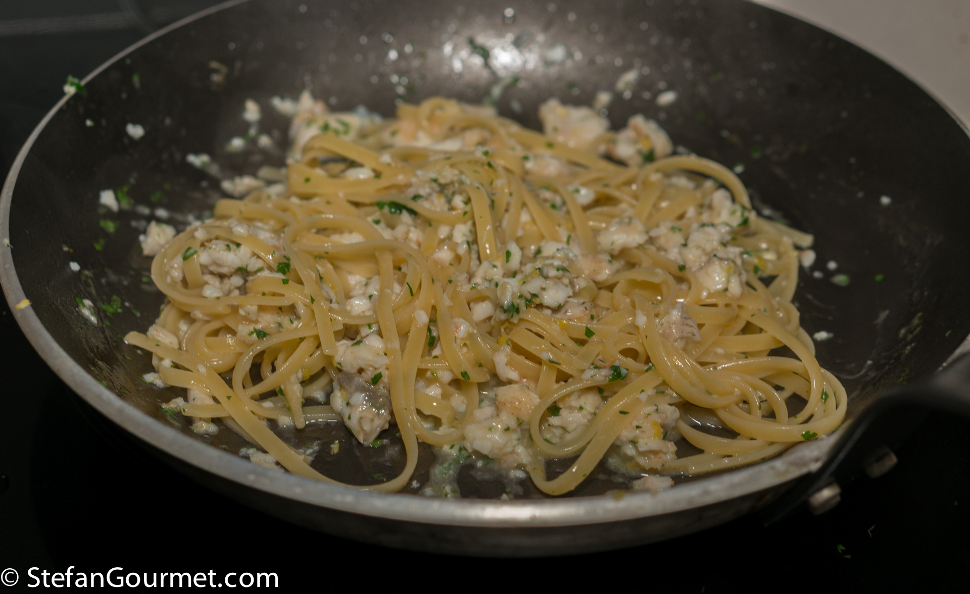 Toss gently to avoid breaking up the fish until the pasta is coated with the sauce.