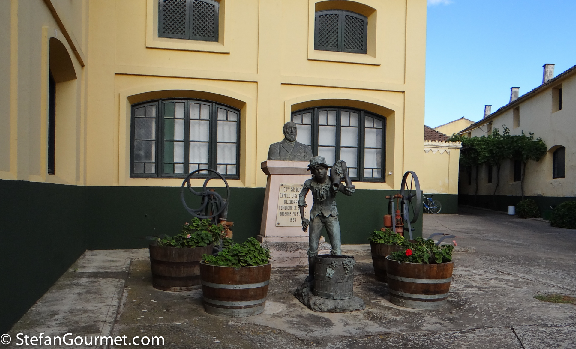 The winery was founded in 1856 by Camilo Castilla, who had learned how to make wine in Bordeaux and then in the south of Spain. He realized the potential of moscatel de grano menudo in Navarra. This grape variety is considered to be the best muscat variety and is known under many names around the world, like muscat blanc à petit grains in France and moscato bianco in Italy. It has smaller berries and is more aromatic than the other wide-spread muscat, muscat of Alexandria. The winery has 50 ha (120 acres) of own vineyards.