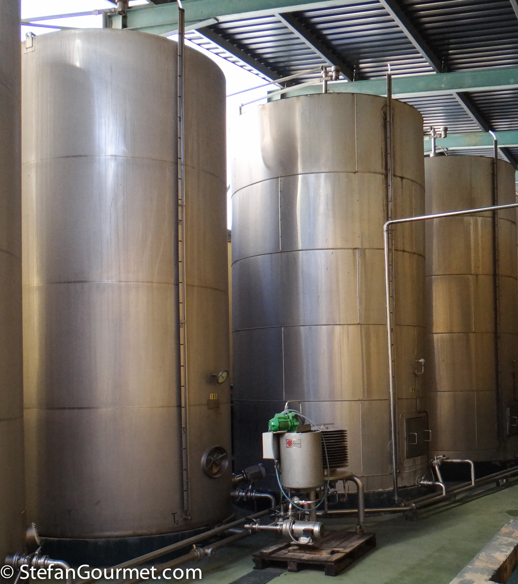After touring the winery it was time to taste the wines. In the photo it is clear to see that the wines aged in oak become darker in color. The wines are sold under several names in different markets.