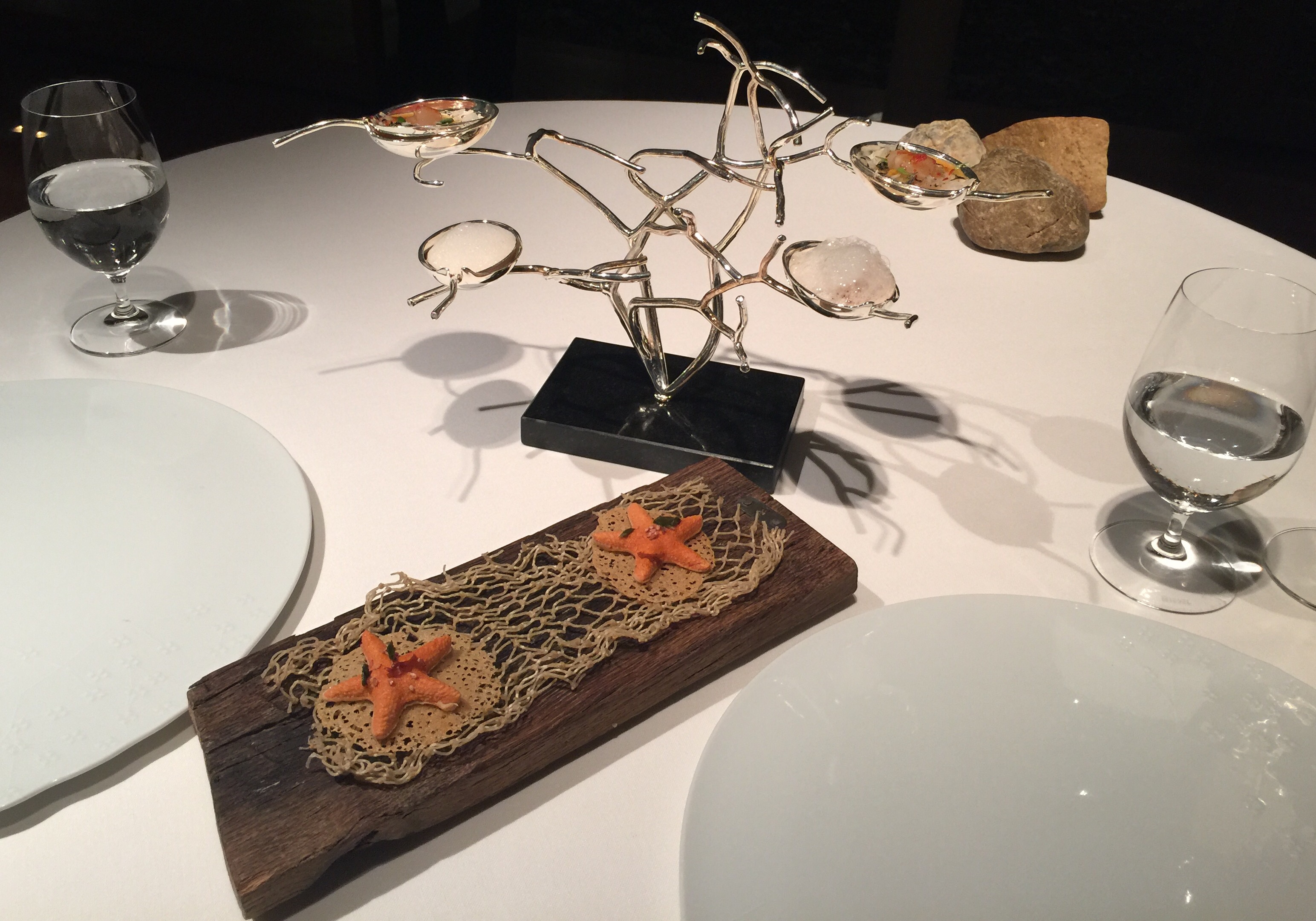 Returning to a restaurant where you’ve had a fantastic experience (read about it here, that was in 2012) can be tricky, because expectations are so high that it is hard for the restaurant to live up to them. No need to worry in this case, because our dinner last night at Can Roca was as good as four years ago. The prices are still low for this level of dining: 195 euros for a 14-course tasting menu (rightfully called “feast”) plus 90 euros for matching wines, or 145 euros for a degustation of classic dishes. It goes without saying that we opted for the feast.