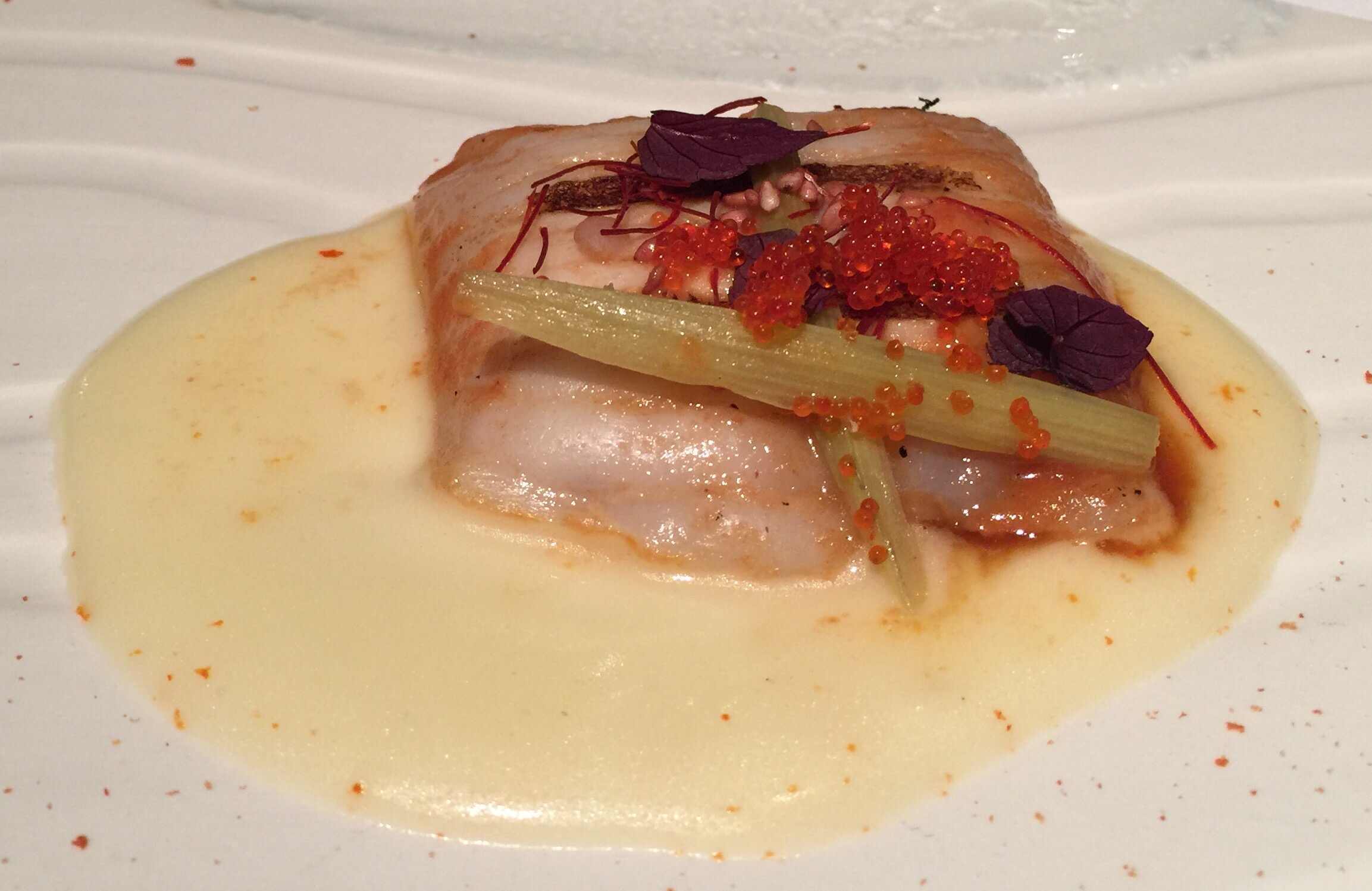 With these appetizers are served the house cava and a 1er cru ‘blanc de blancs’ champagne. I am not going to describe all the appetizers in detail, or this post will never end. All are excellent and many our outstanding, intricate and creative, causing flavor explosions and bursts of joy. I think it is silly to score 11/10, but otherwise I would. So 10/10 it is.