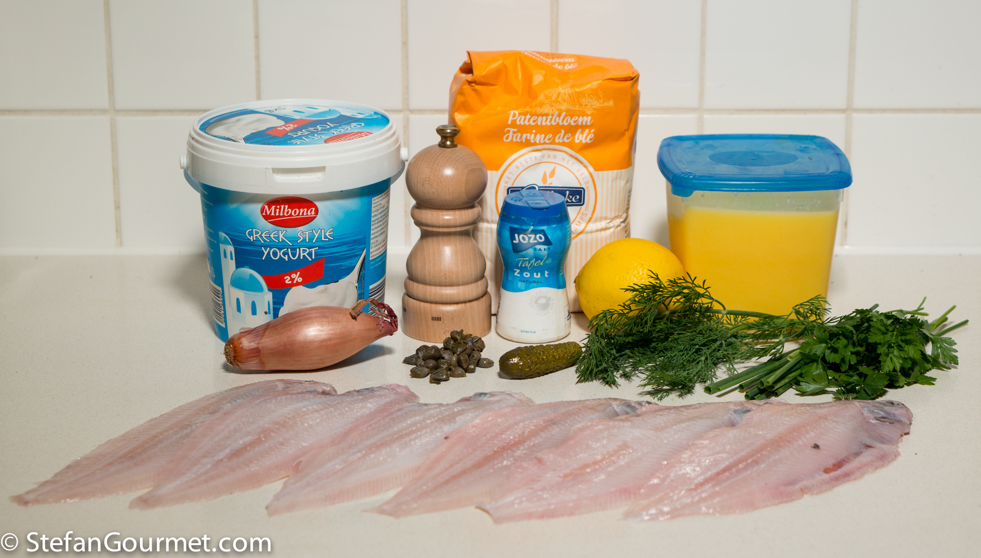 Fried fish is really good with remoulade sauce, but that mayonnaise-based sauce is not the most healthy of options. And so I decided to try making a version with yogurt at its base, and tried it with baby sole, pan-fried in clarified butter. It was delicious!