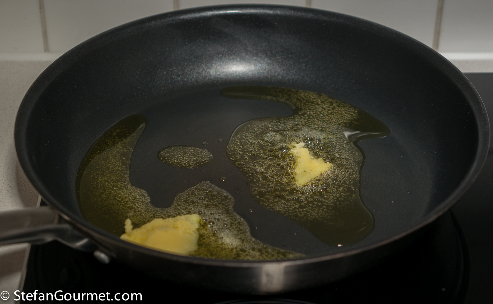 Melt a generous amount of clarified butter in a non-stick frying pan.