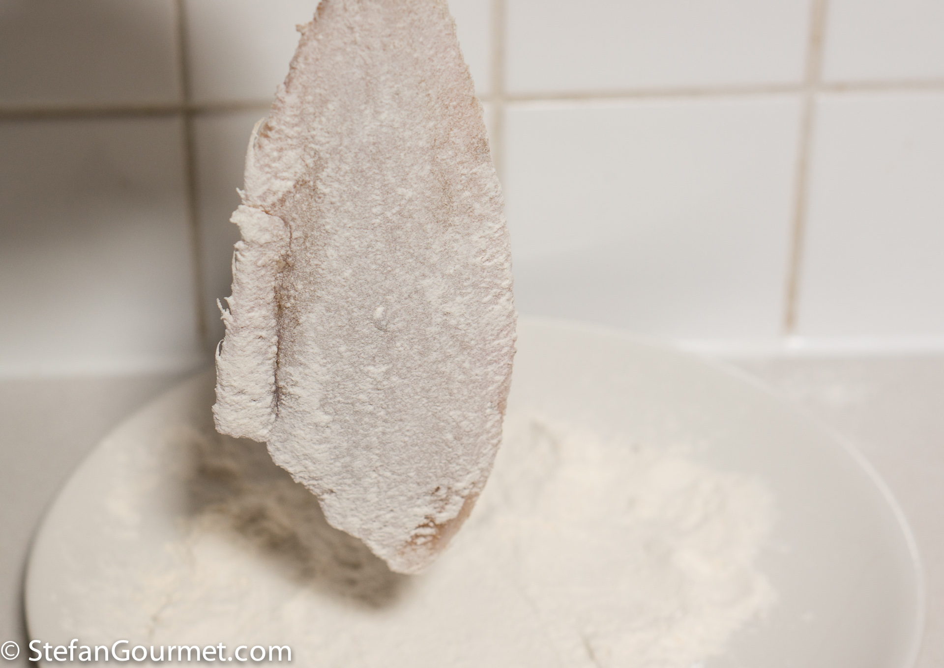 Put some flour on a plate. Dip each sole in the flour on both sides, then shake off any excess flour.