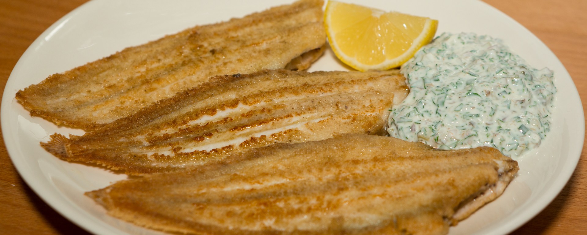 Serve the sole with the yogurt remoulade sauce and a lemon wedge.