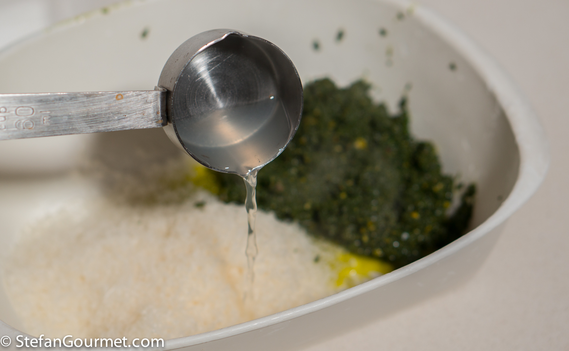 …and stir to mix. This loosens up the pesto to mix it with the pasta.