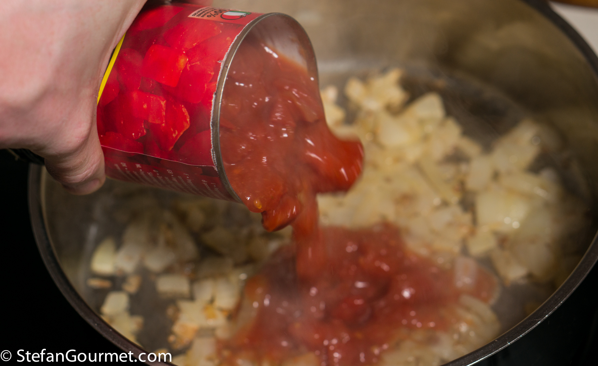 Add 400 grams of chopped tomatoes.