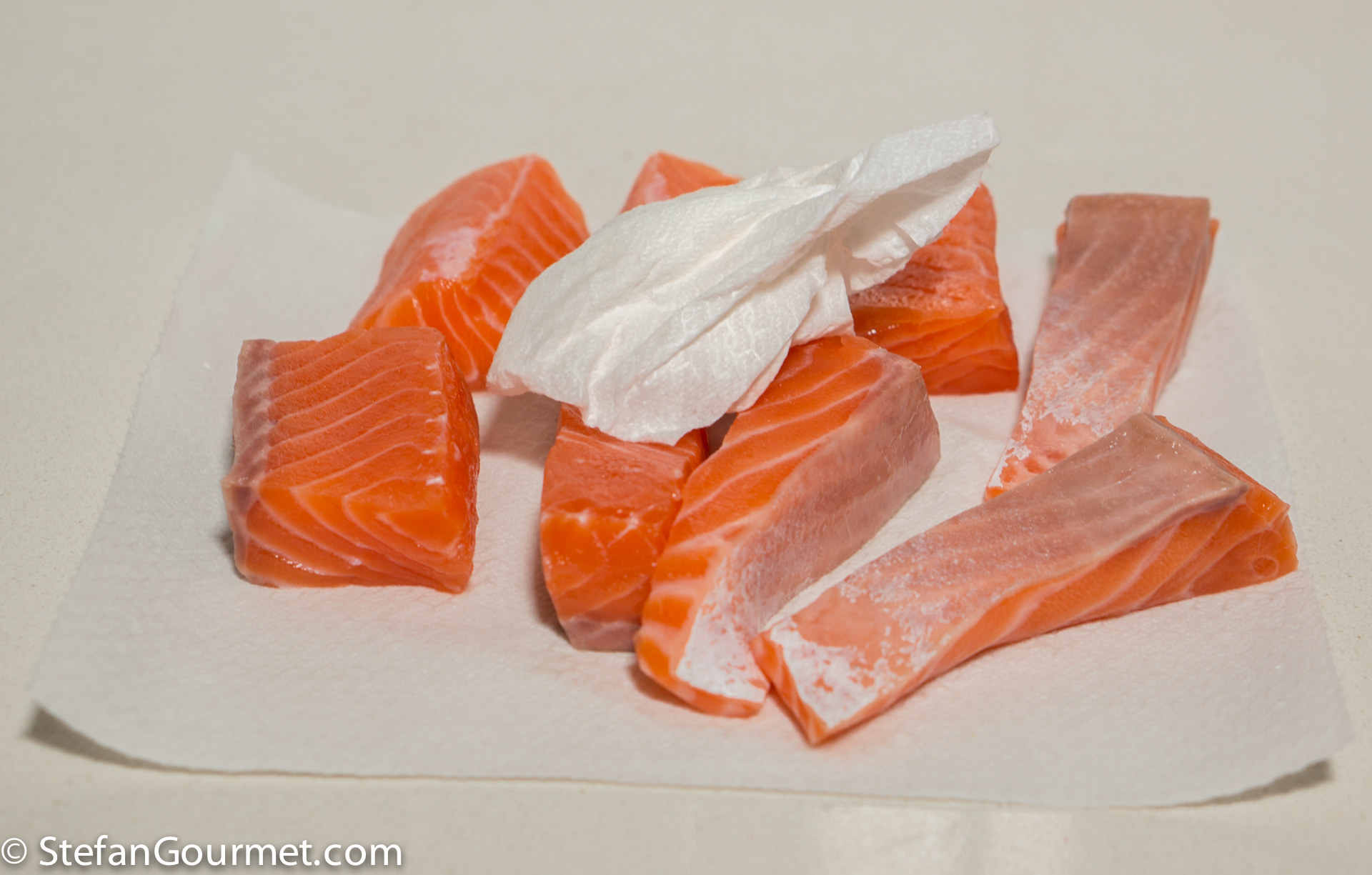 Pat the salmon dry with paper towels.
