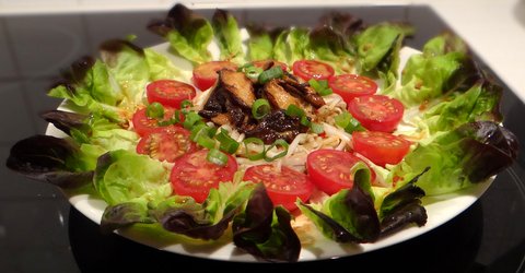 The salad actually falls in the same category! A common misconception is that animal-based foods are more likely to be contaminated than plant-based foods. Statistically speaking, that is simply not true. Large-scale washing of salad leaves and the like in processing facilities can make it worse, because it can spread the contamination by way of the water used for the washing. If you look again at the photo of the pork, the sage may actually be more dangerous than the pork.