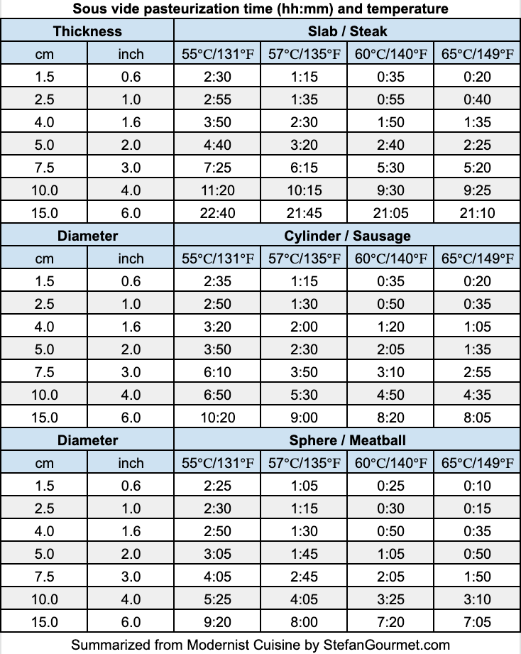 Please note that an accurate thermometer is important when cooking at a low temperature. If you aren’t sure about your thermometer, it is best to assume it is off by a couple of degrees and adjust the cooking time accordingly to achieve true pasteurization.