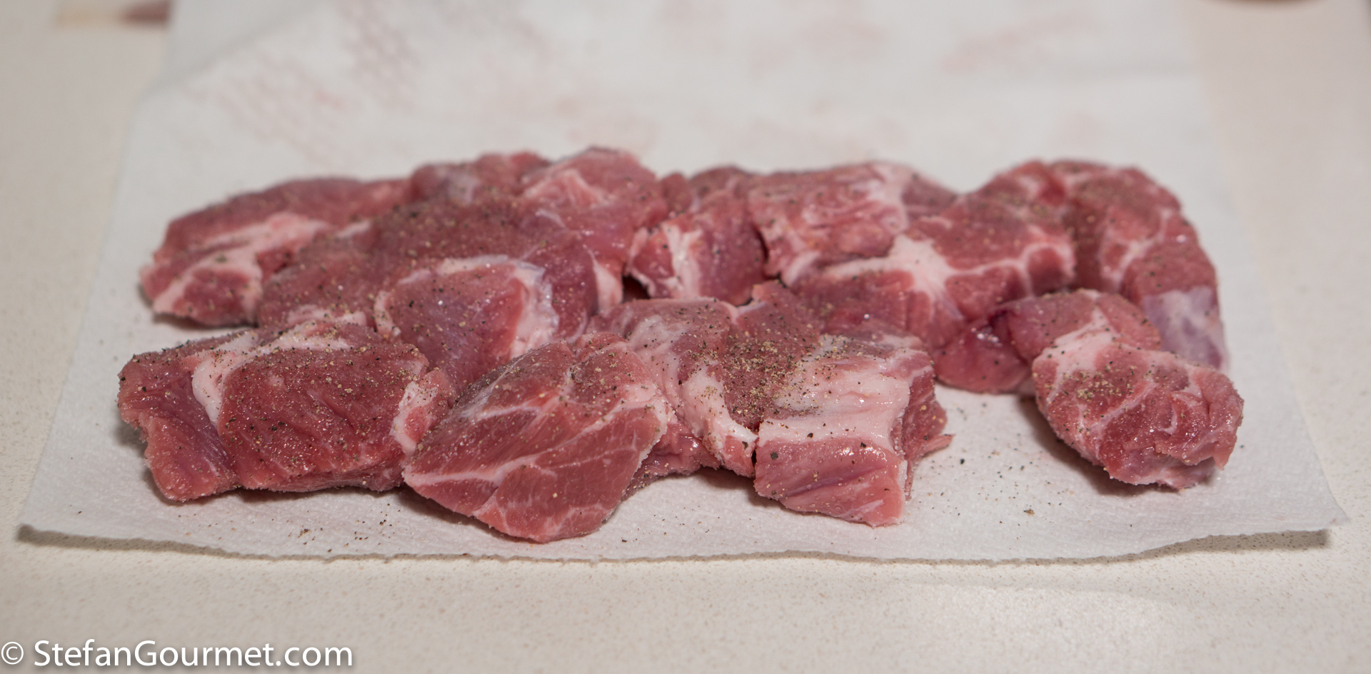 Pat the meat dry with paper towels and season on all sides with salt and freshly ground black pepper.