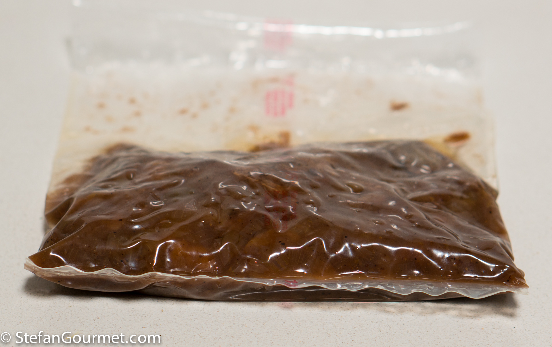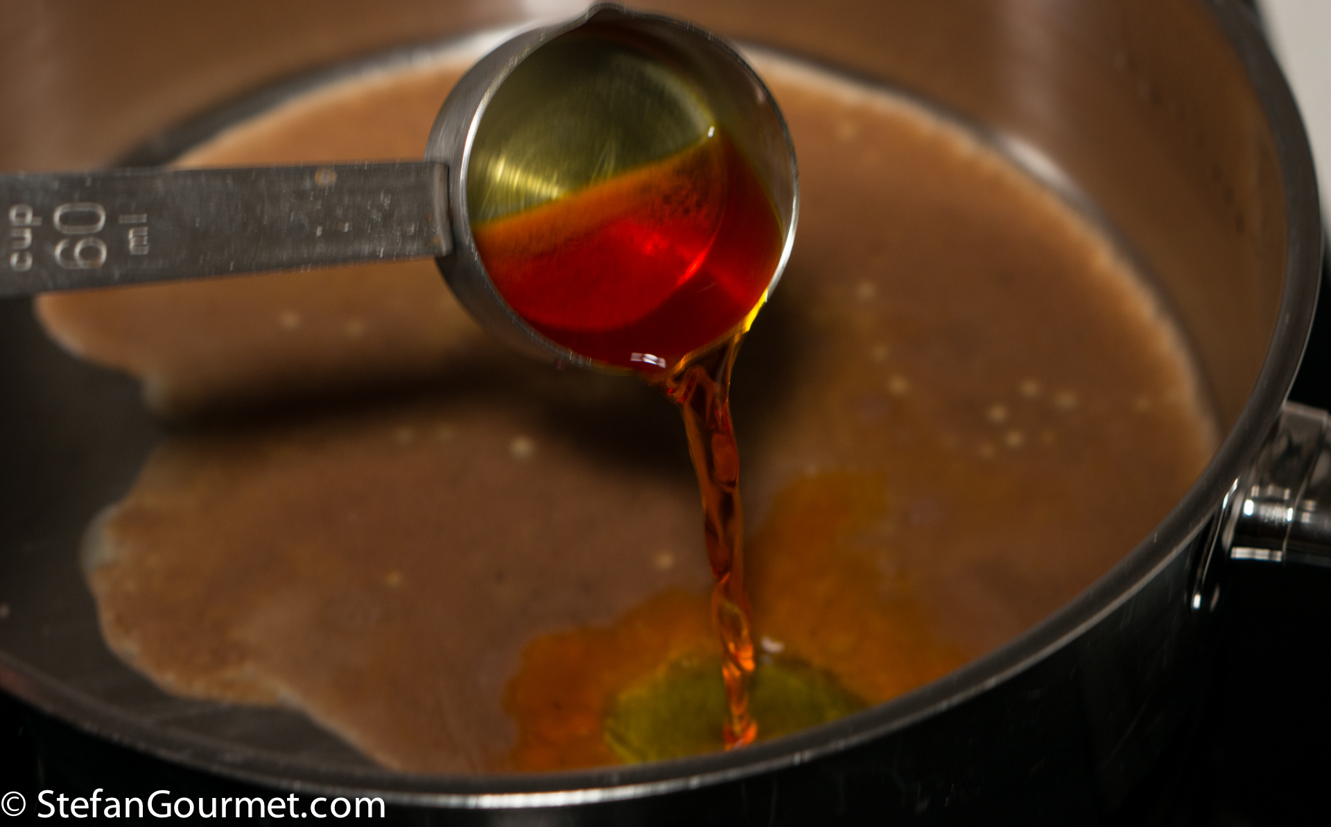 After those 24 hours, strain the juices from the sous-vide bag into a pan.
