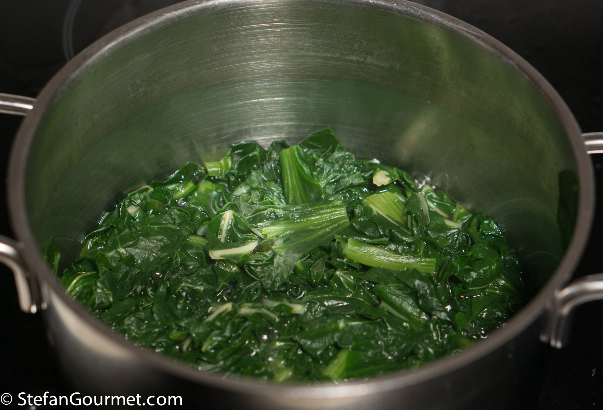 Be careful not to burn yourself if you do this while the greens are still hot.