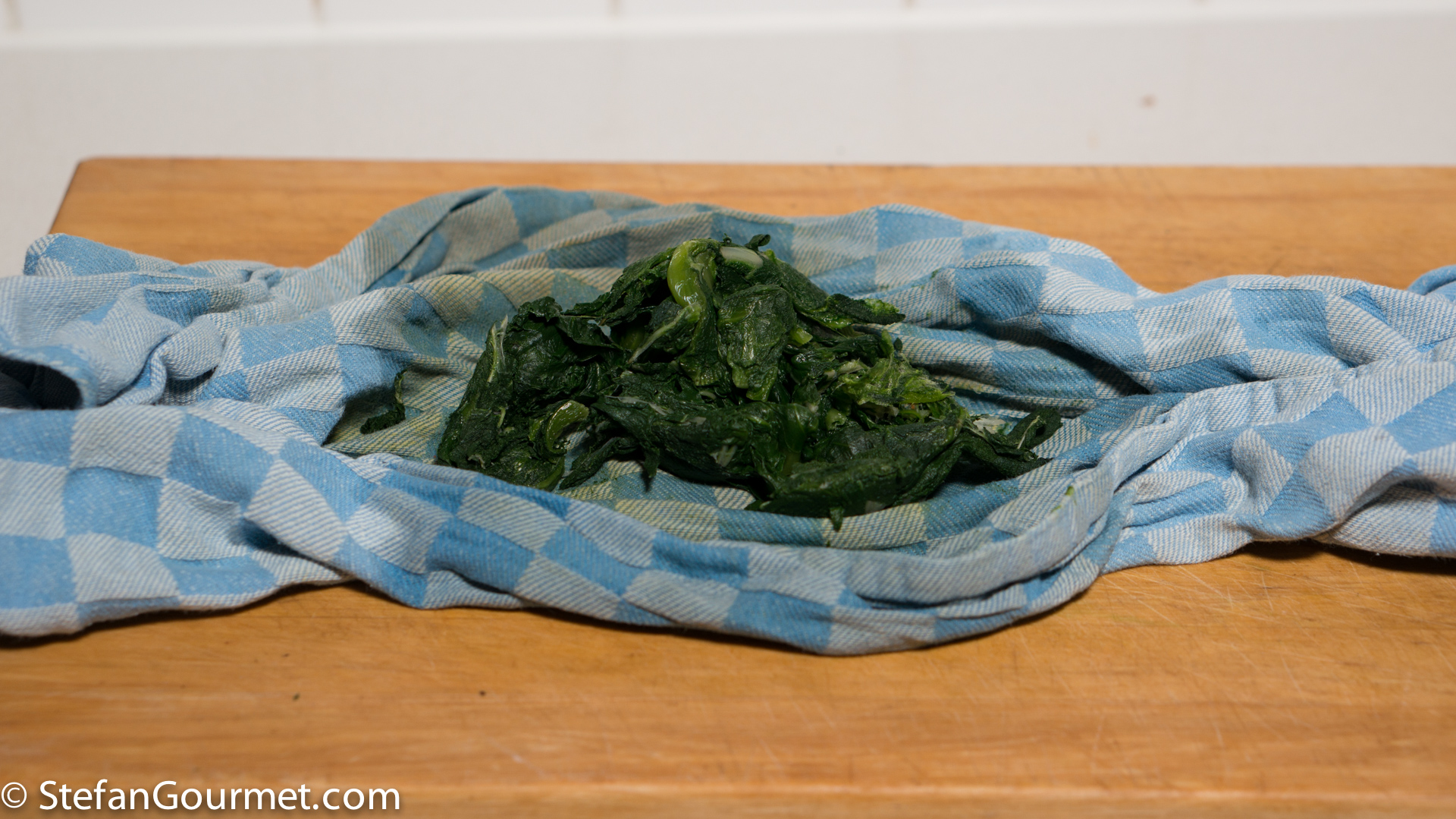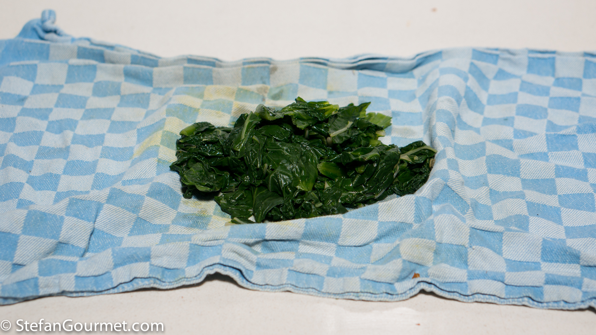 Drain the greens in a colander, then put them on an old tea towel.