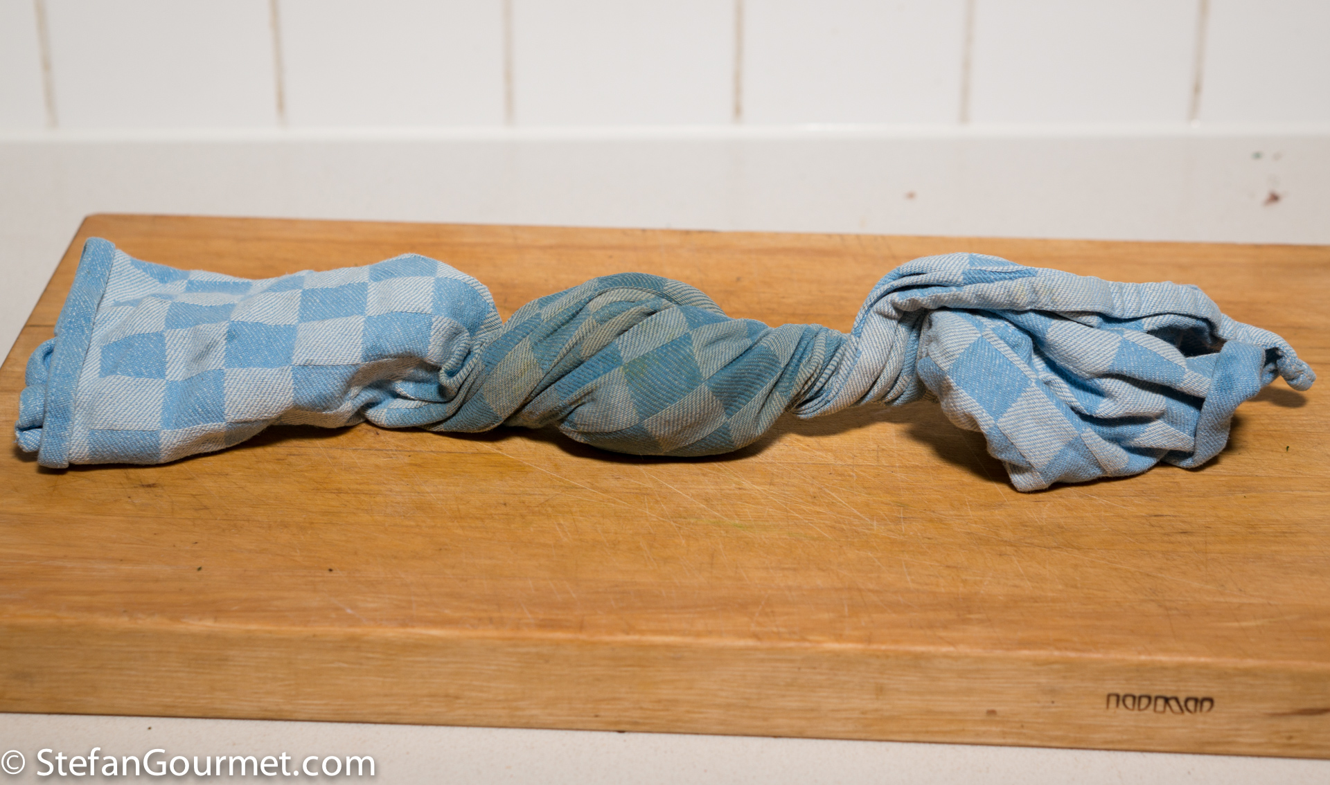 Use the tea towel to squeeze out the water.
