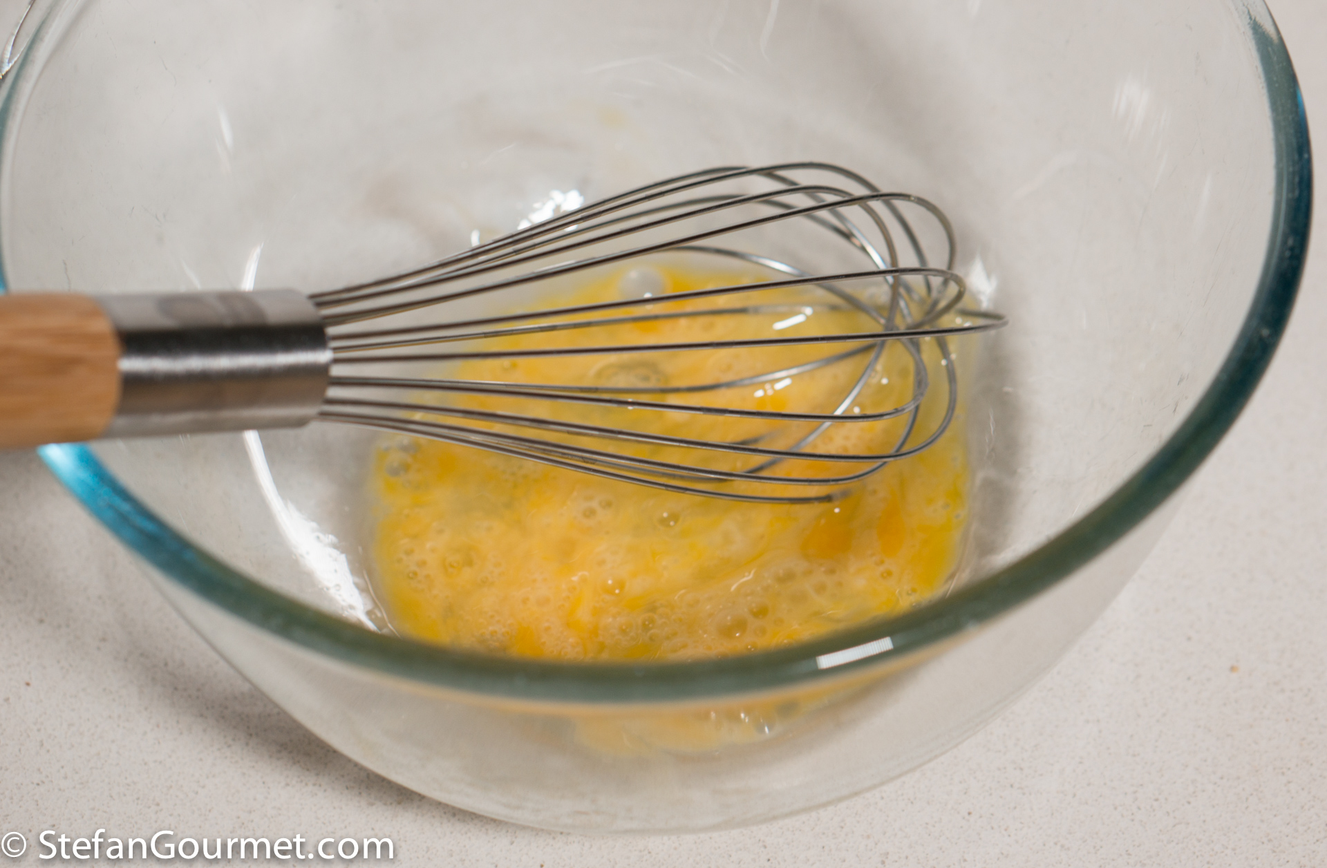 Beat an egg in a large bowl.