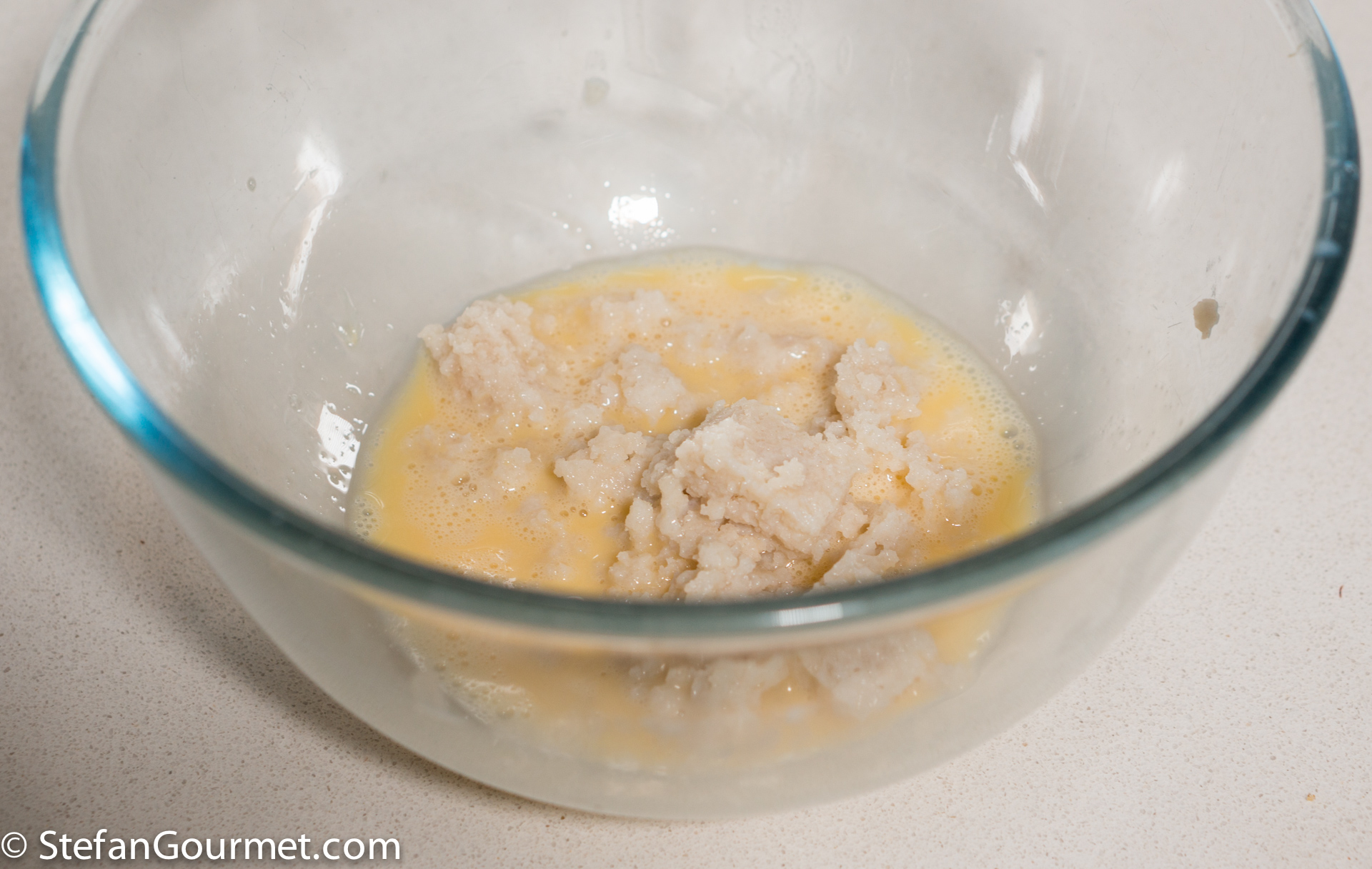 Squeeze out the bread that was soaked in milk, and add to the egg.