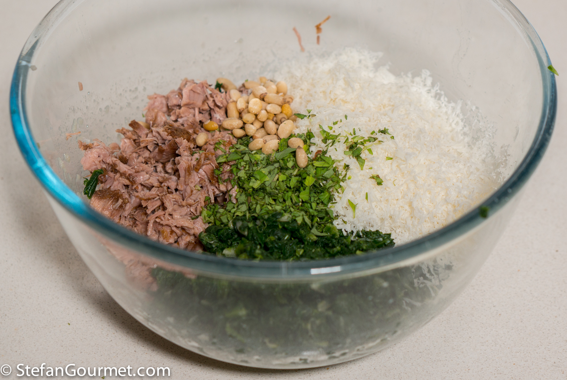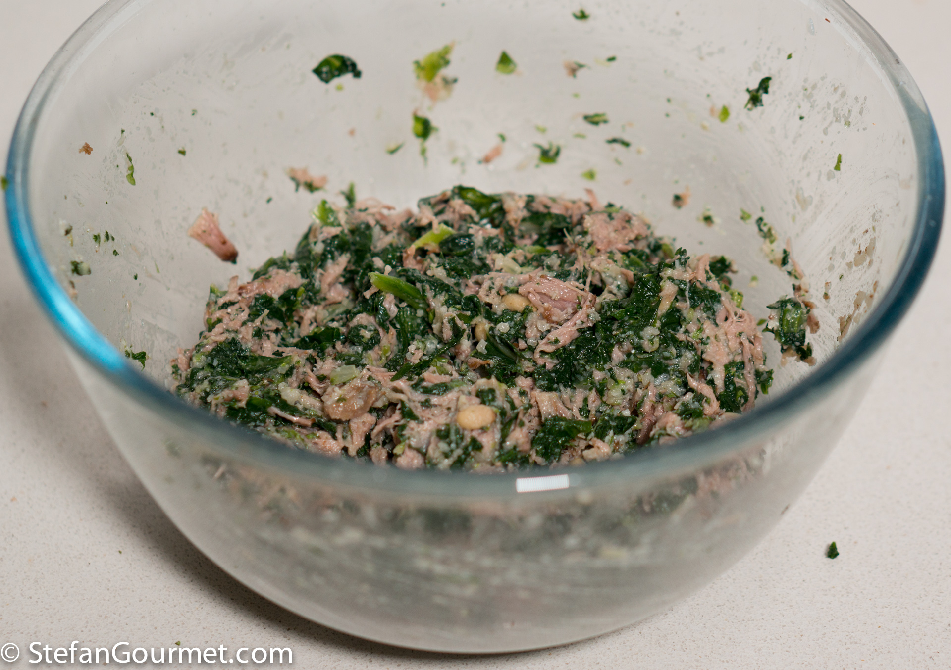 Traditional recipes also contain offal, like thymus/sweetbread and brains. In modern versions this is often left out. If you do want to add them, clean them of any membranes/impurities and blanch them briefly in boiling water before chopping them up and adding them to the filling. Since Paola (who is from Liguria) said she doesn’t add them, I felt comfortable not adding them either.