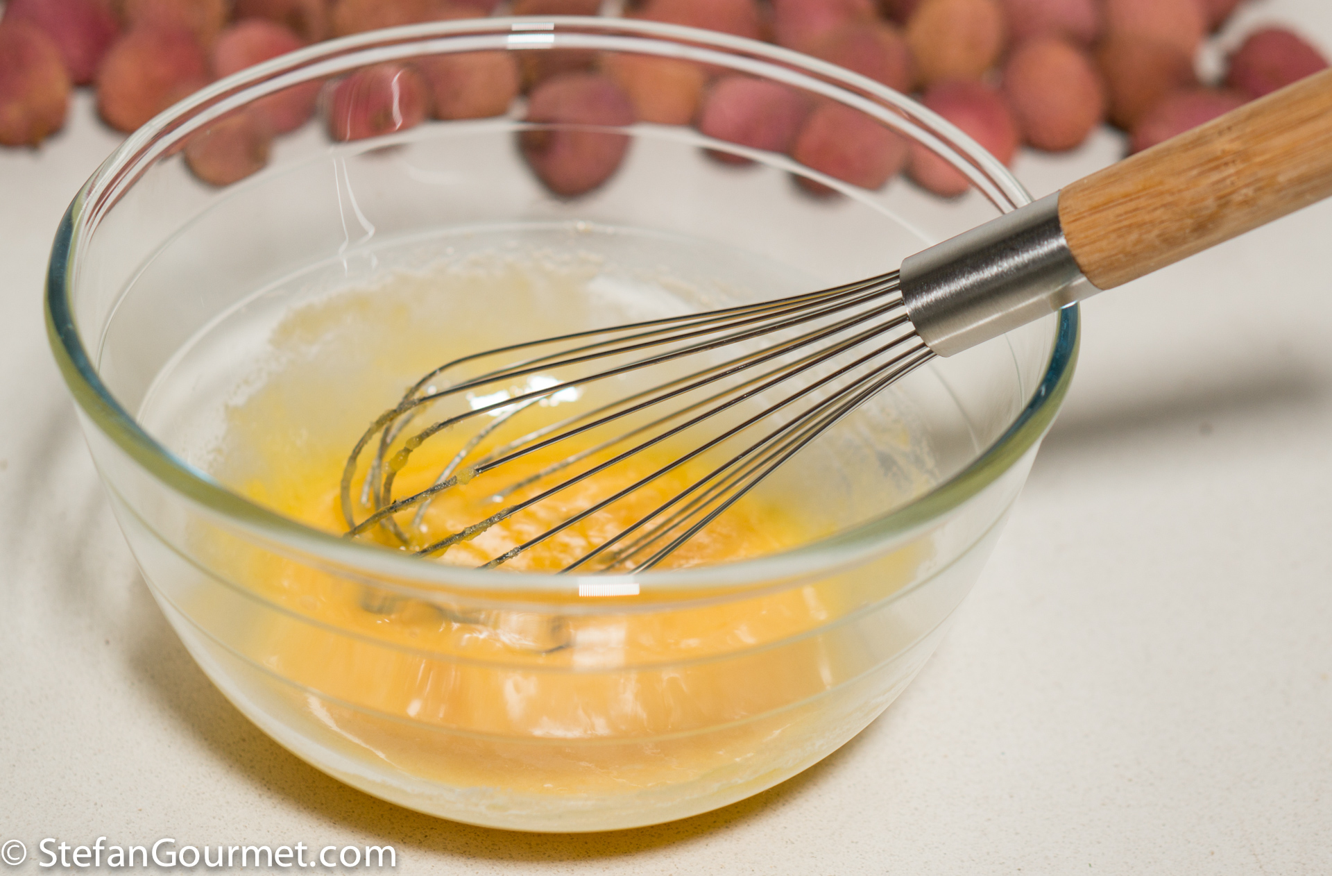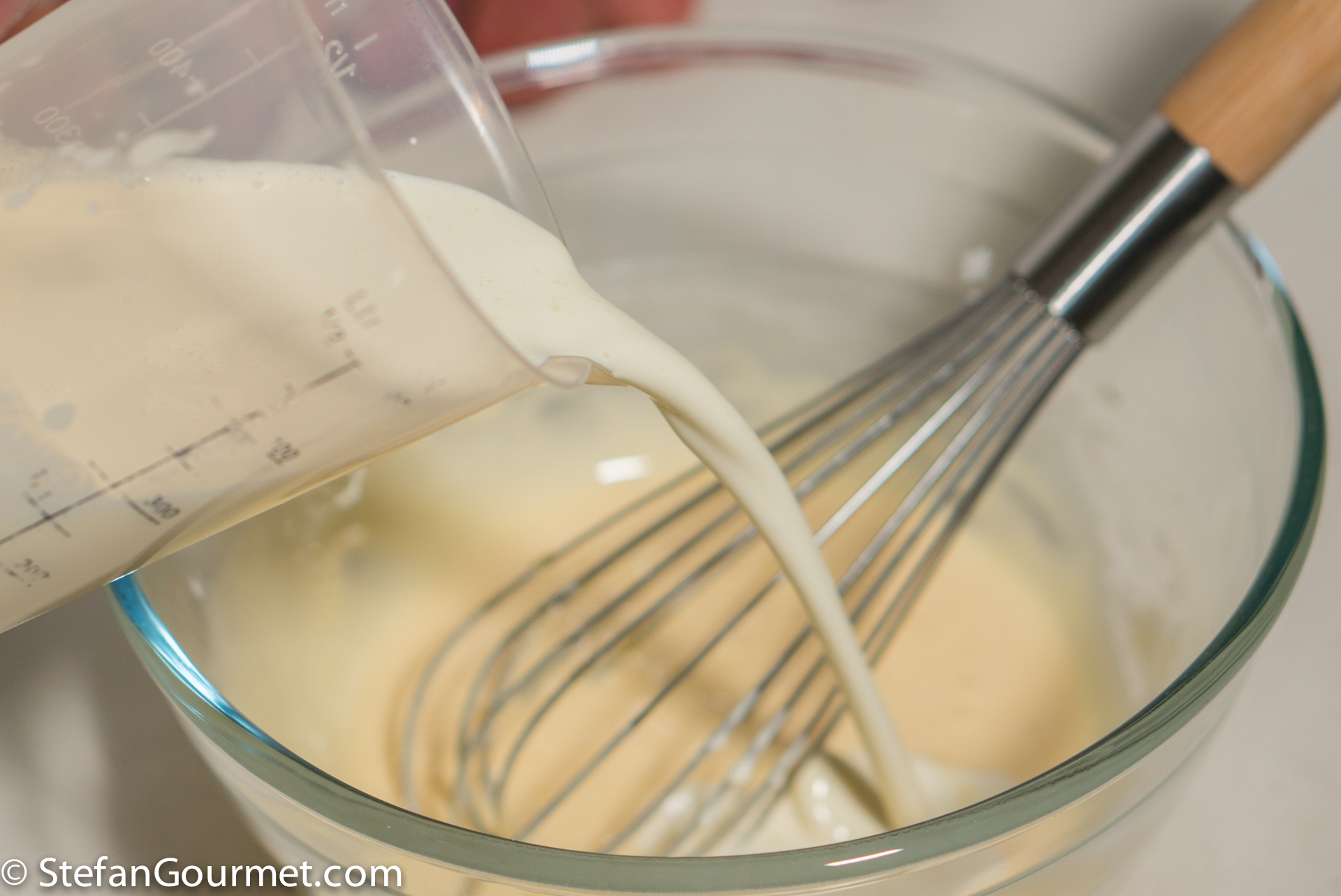 Whisk until pale and creamy. The color change can be clearly seen in the photo, and requires less than a minute of whisking.