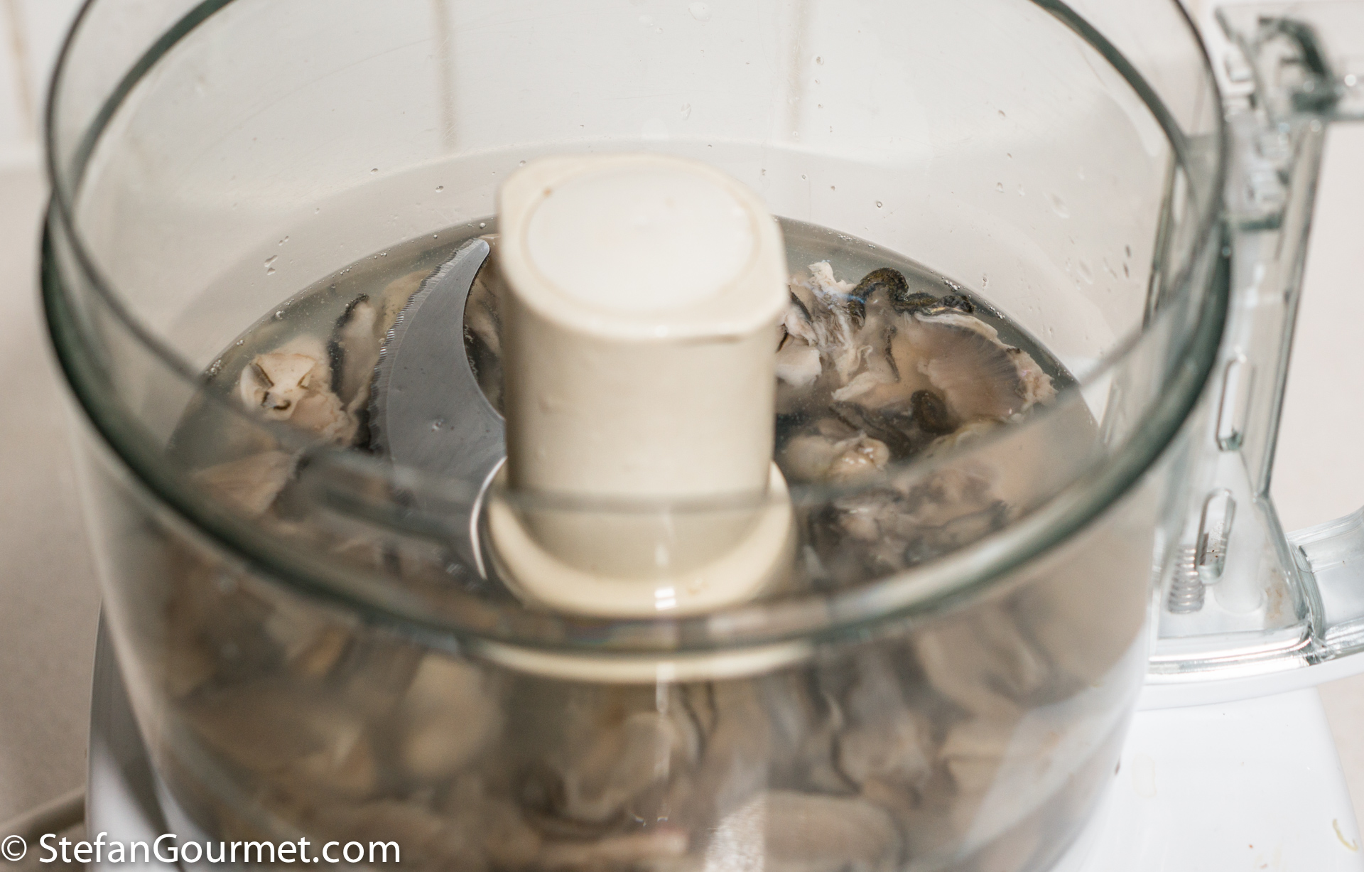 The oysters with their liquid were put in a blender…