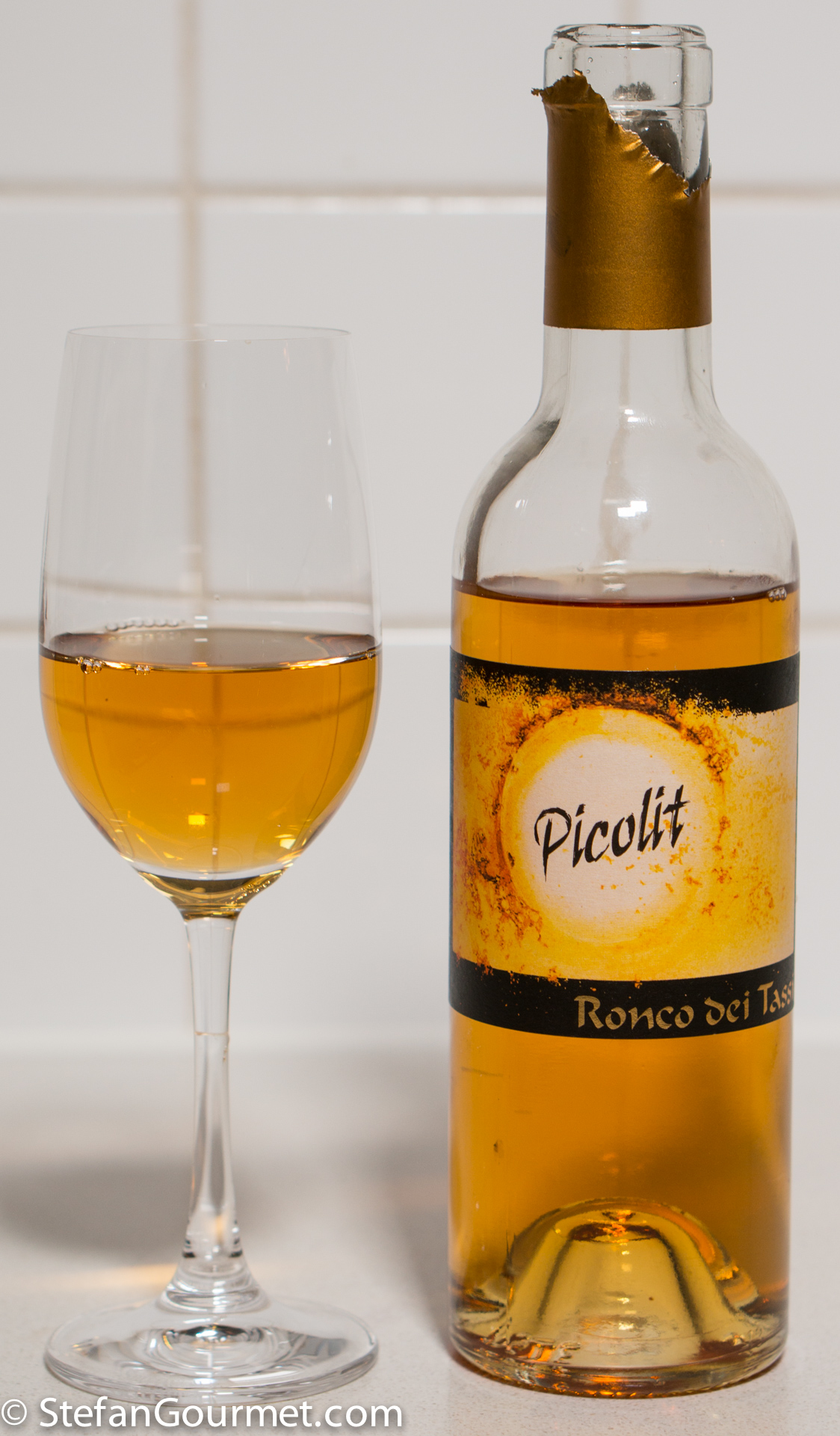 As mentioned in the introduction, stroopwafels are usually served with tea or coffee and not as a dessert. I did serve them after a dinner and couldn’t resist serving a dessert wine with it. A dessert wine with notes of caramel will work well, like this Picolit from Friuli in North-Eastern Italy. This Collio Picolit DOC worked very well with the waffles, as it was sweet enough and the spicy and caramel notes work well with the cinnamon syrup. Picolit is a native grape variety from Friuli that almost went extinct because of the low yield, but has been rescued and is now used to make delicious passito wines. Passito means that the grapes are dried before making the wine.